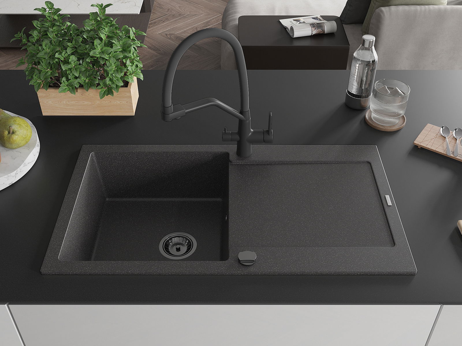 Dobrze zabezpieczona powierzchnia zlewozmywaka hamuje wnikanie zabrudzeń do jego wewnętrznych struktur. Dzięki temu utrzymanie zlewu w czystości jest jeszcze łatwiejsze, a jego powierzchnia zachowuje swoją estetykę na dłużej.