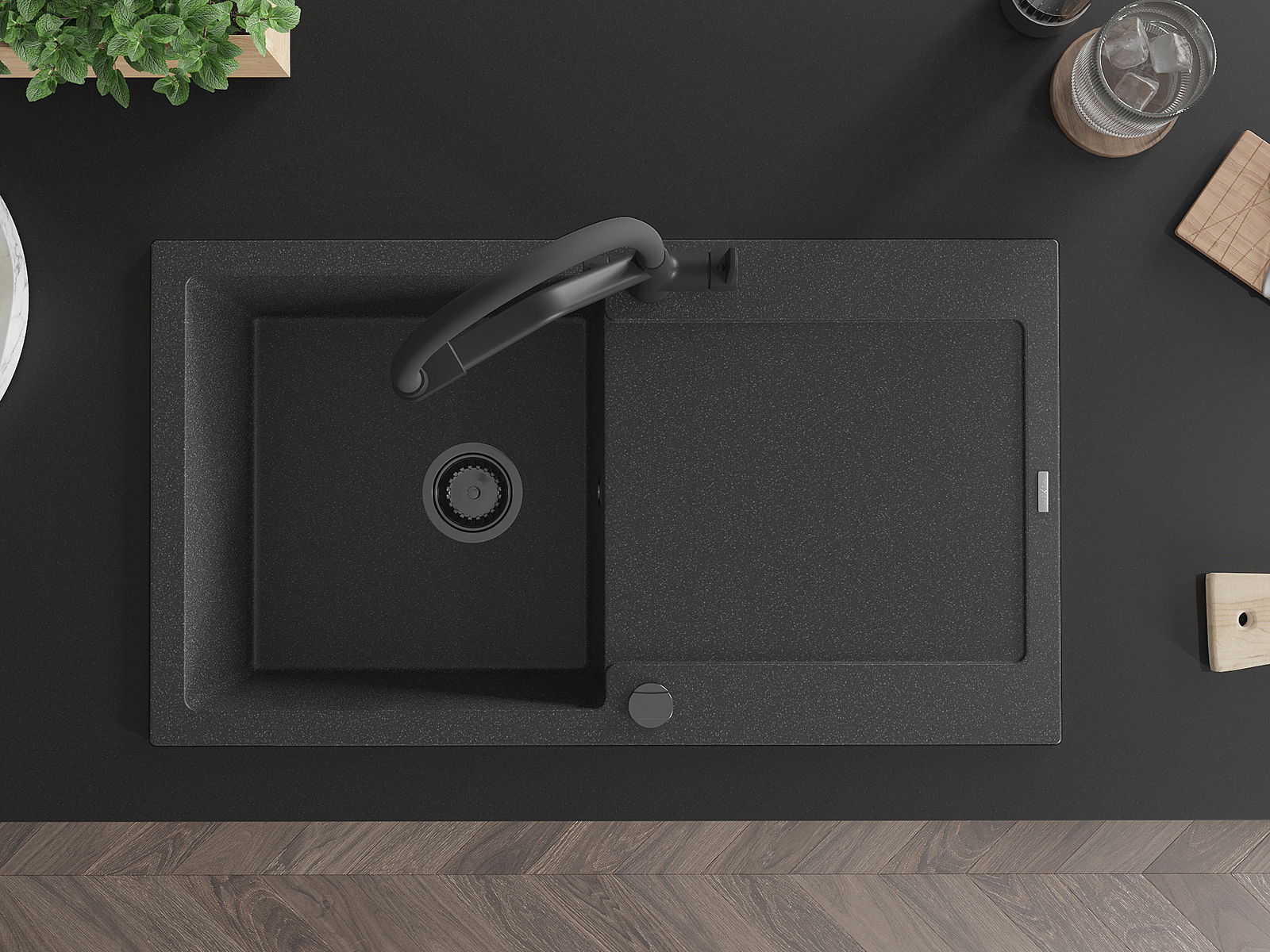 Dzięki zastosowaniu uniwersalnego systemu mocowania, zlew jest odwracalny, a ociekacz może zostać zamontowany na blacie po lewej lub prawej stronie. W ten sposób możesz z łatwością dopasować stronę do swoich potrzeb i warunków.