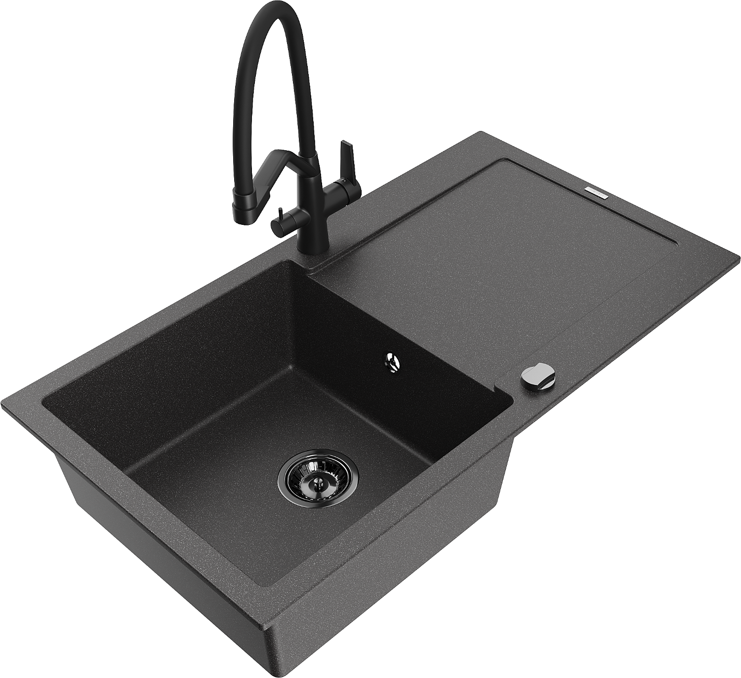 Mexen Leo zlewozmywak granitowy 1-komorowy z ociekaczem i baterią kuchenną Duo, czarny nakrapiany - 6501-76-671701-70-B