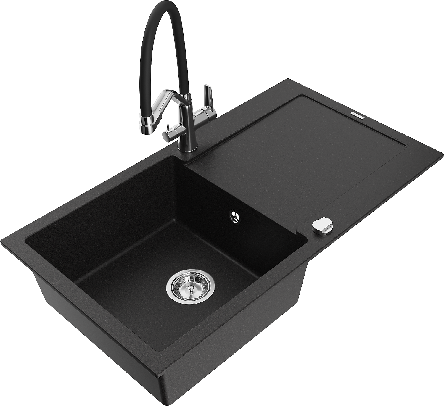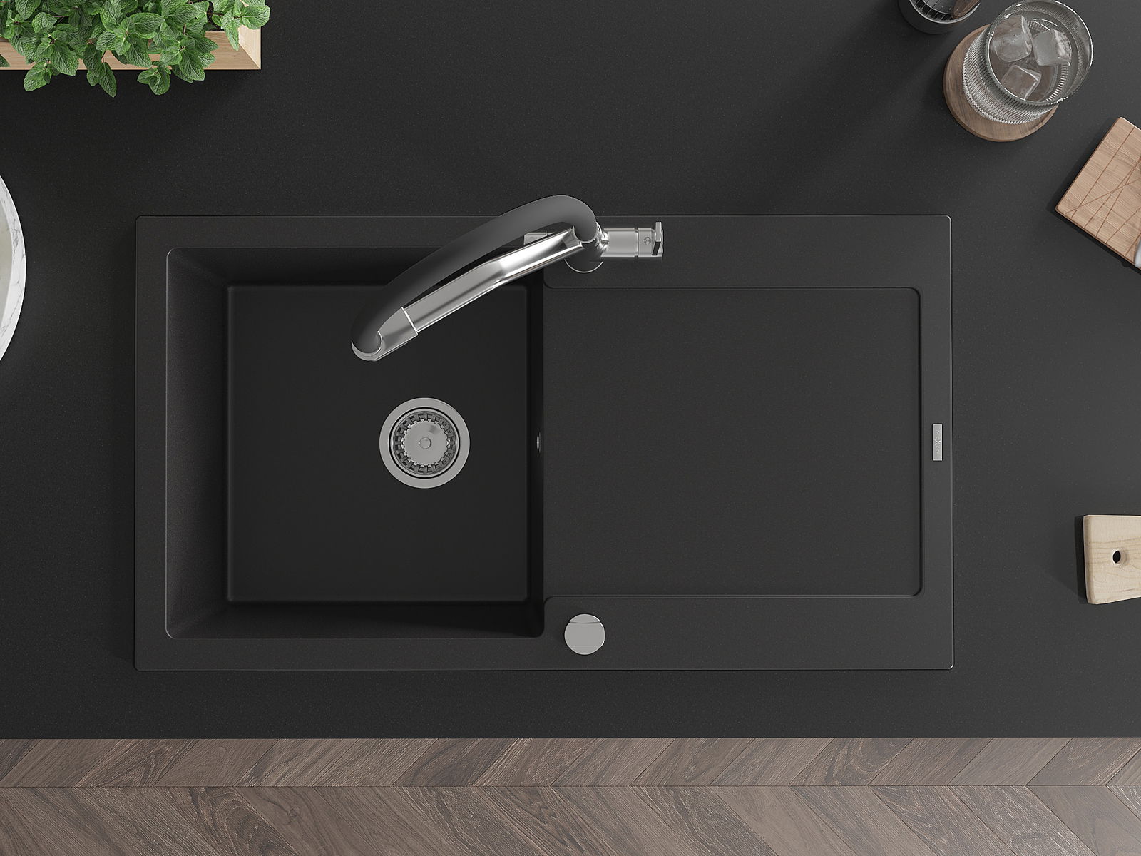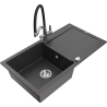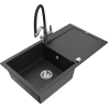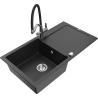 Mexen Leo zlewozmywak granitowy 1-komorowy z ociekaczem i baterią kuchenną Duo, czarny - 6501-77-671701-07