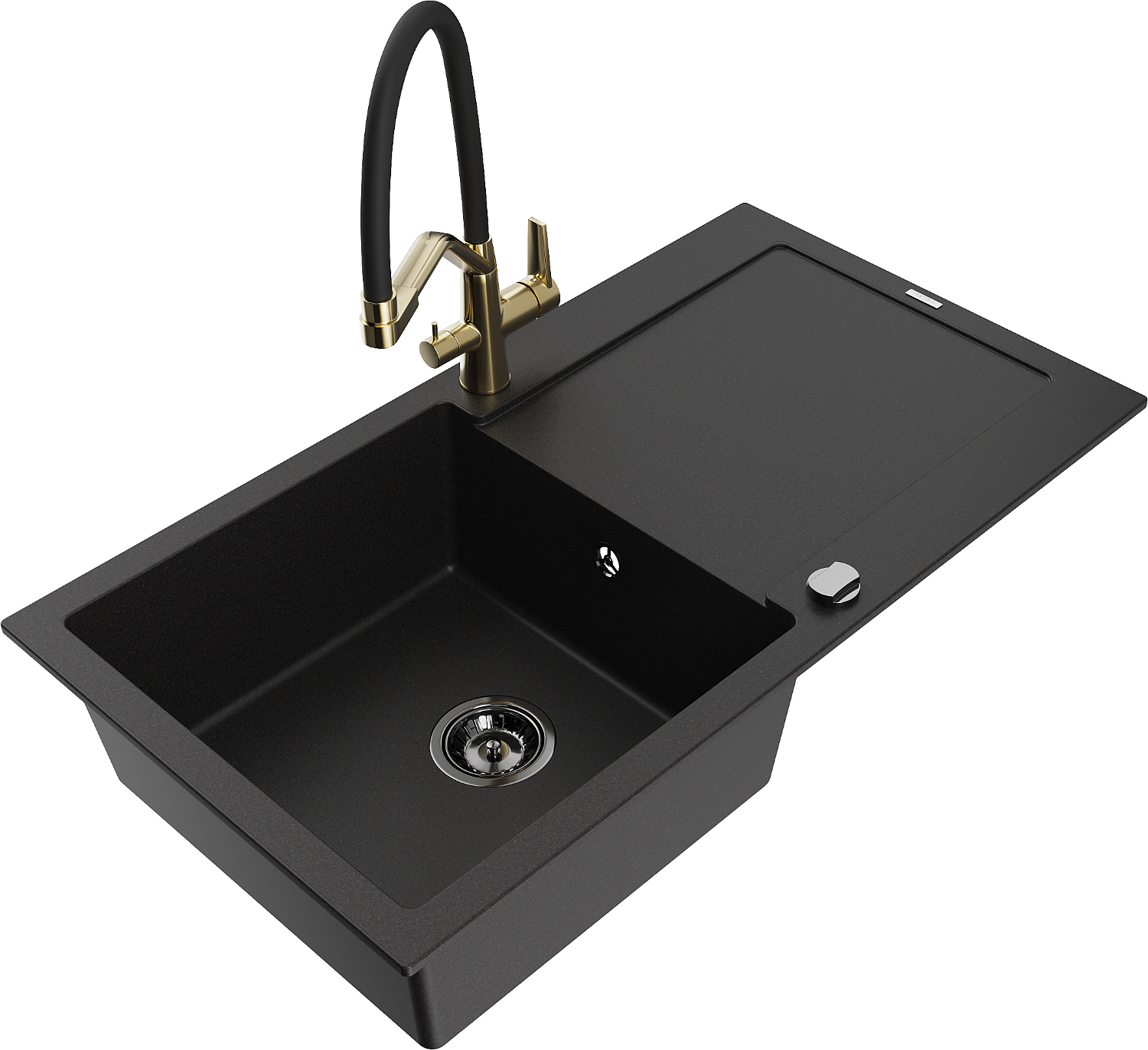 Mexen Leo zlewozmywak granitowy 1-komorowy z ociekaczem i baterią kuchenną Duo, czarny - 6501-77-671701-57-B