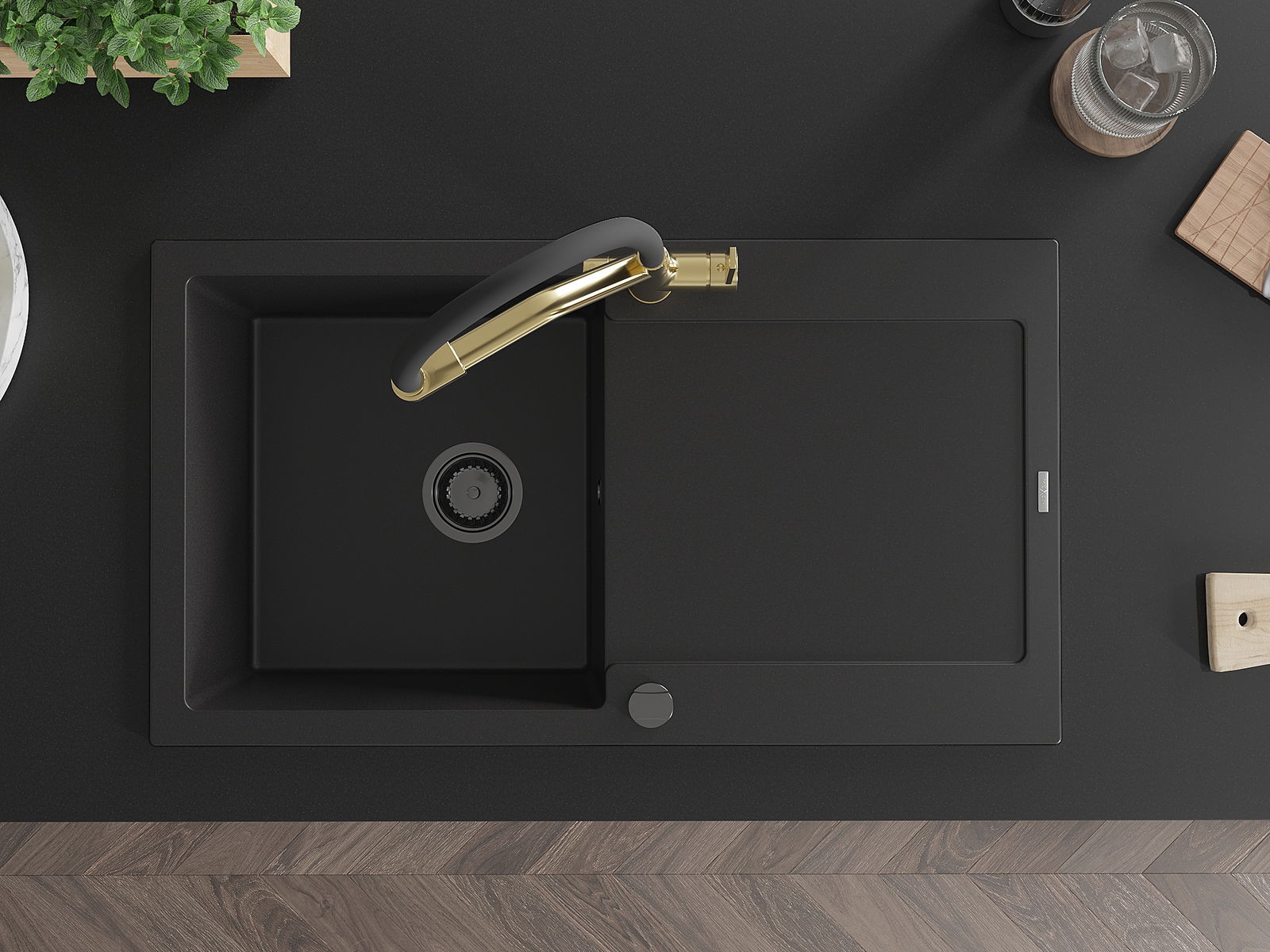 Dzięki zastosowaniu uniwersalnego systemu mocowania, zlew jest odwracalny, a ociekacz może zostać zamontowany na blacie po lewej lub prawej stronie. W ten sposób możesz z łatwością dopasować stronę do swoich potrzeb i warunków.