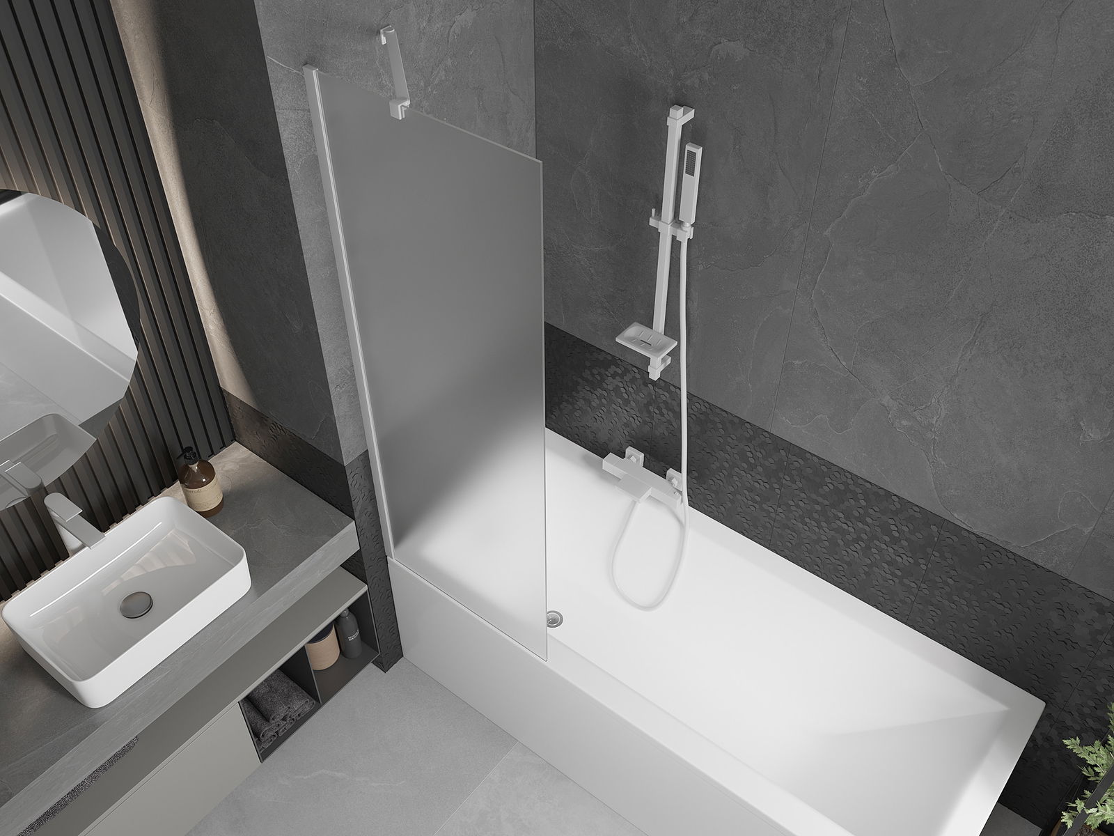 Dzięki zastosowaniu uniwersalnego systemu mocowania, parawan może być zamontowany z prawej lub z lewej strony, zależnie od potrzeb. W ten sposób możesz z łatwością zaprojektować prysznic dopasowany do przestrzeni łazienki.