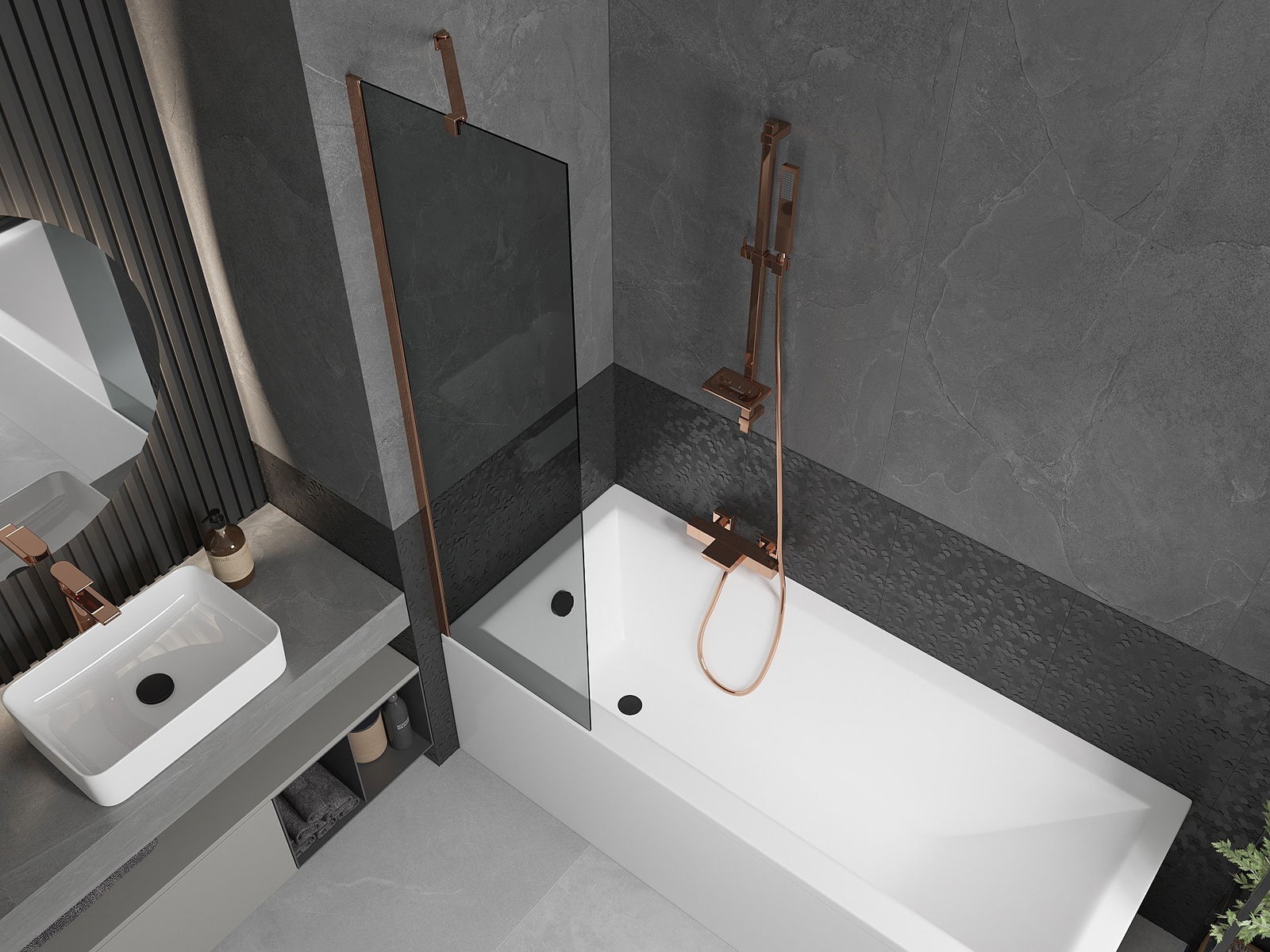 Mexen Next parawan nawannowy 1-skrzydłowy 50 x 150 cm, grafit, różowe złoto - 895-050-000-00-40-60