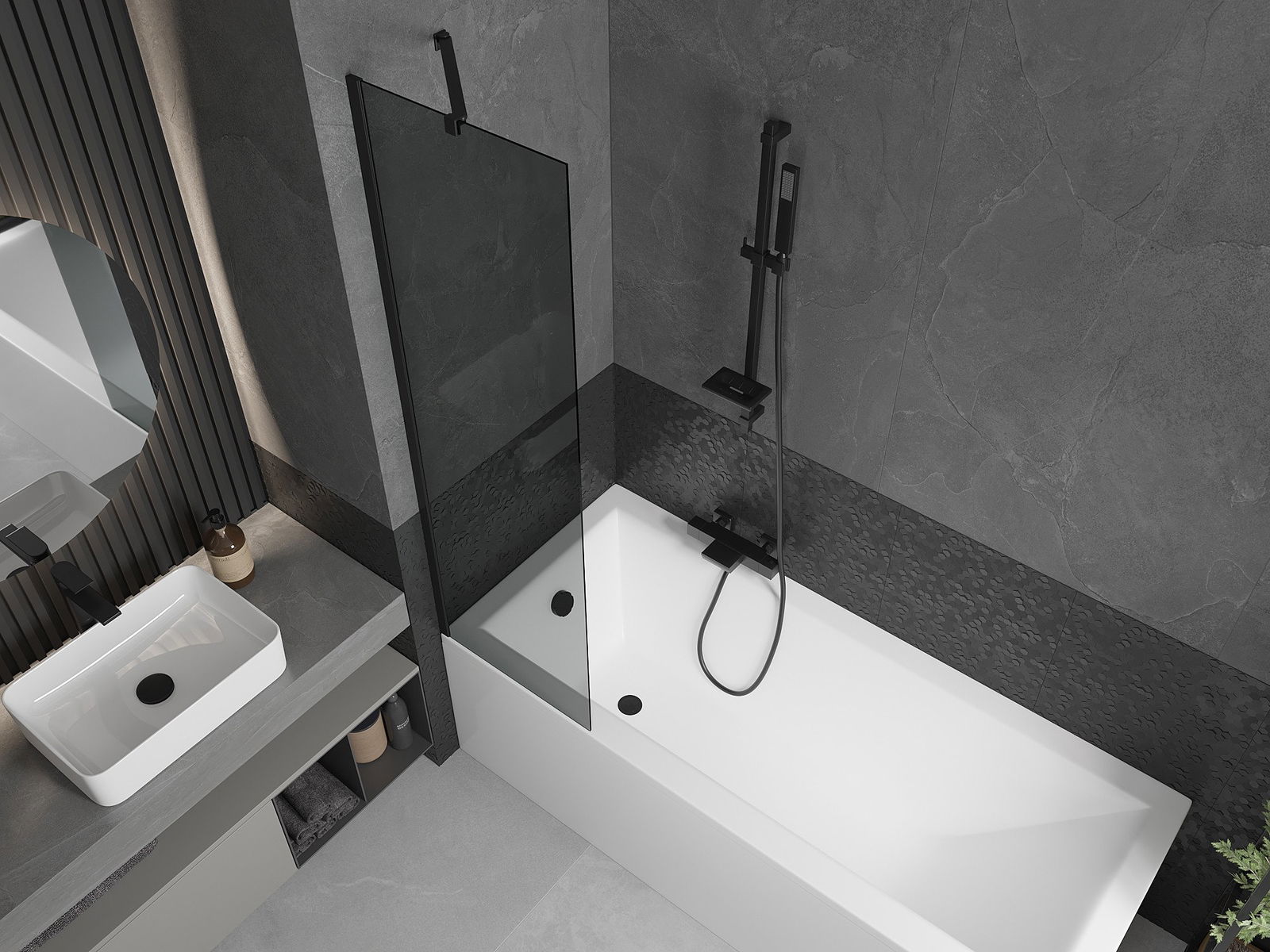 Mexen Next parawan nawannowy 1-skrzydłowy 50 x 150 cm, grafit, czarny - 895-050-000-00-40-70