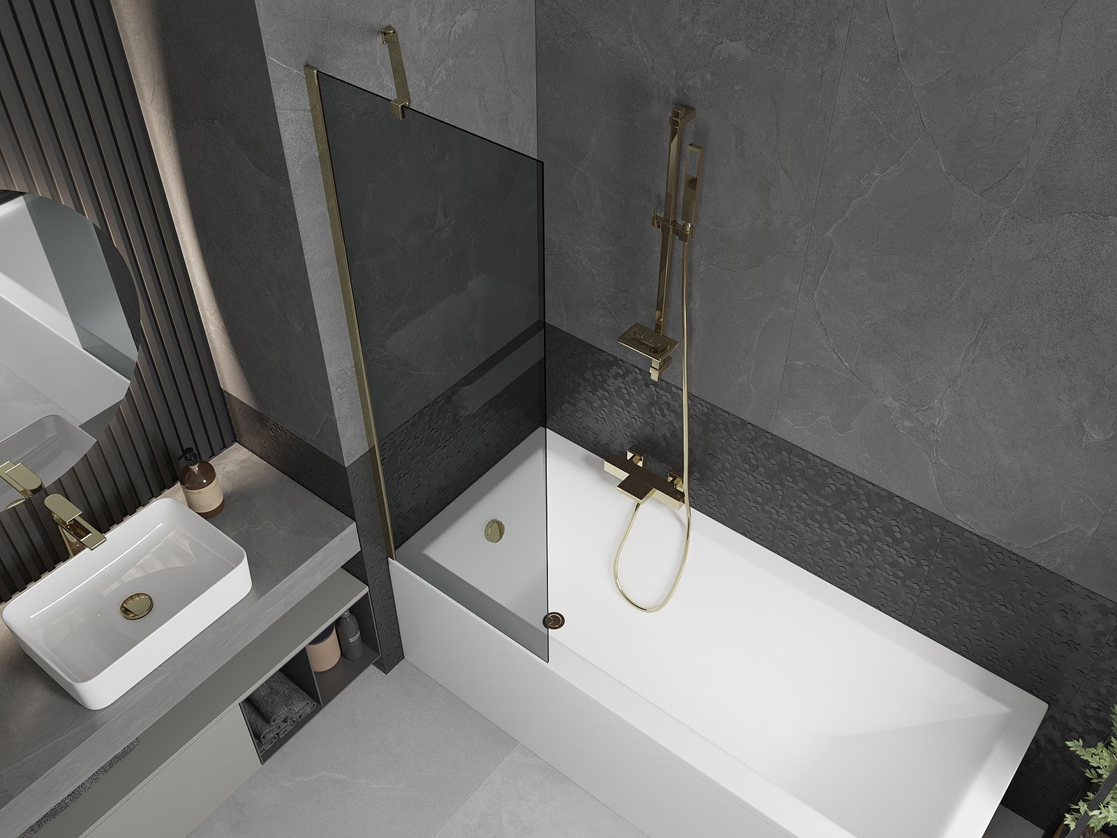 Mexen Next parawan nawannowy 1-skrzydłowy 60 x 150 cm, grafit, złoty - 895-060-000-00-40-50