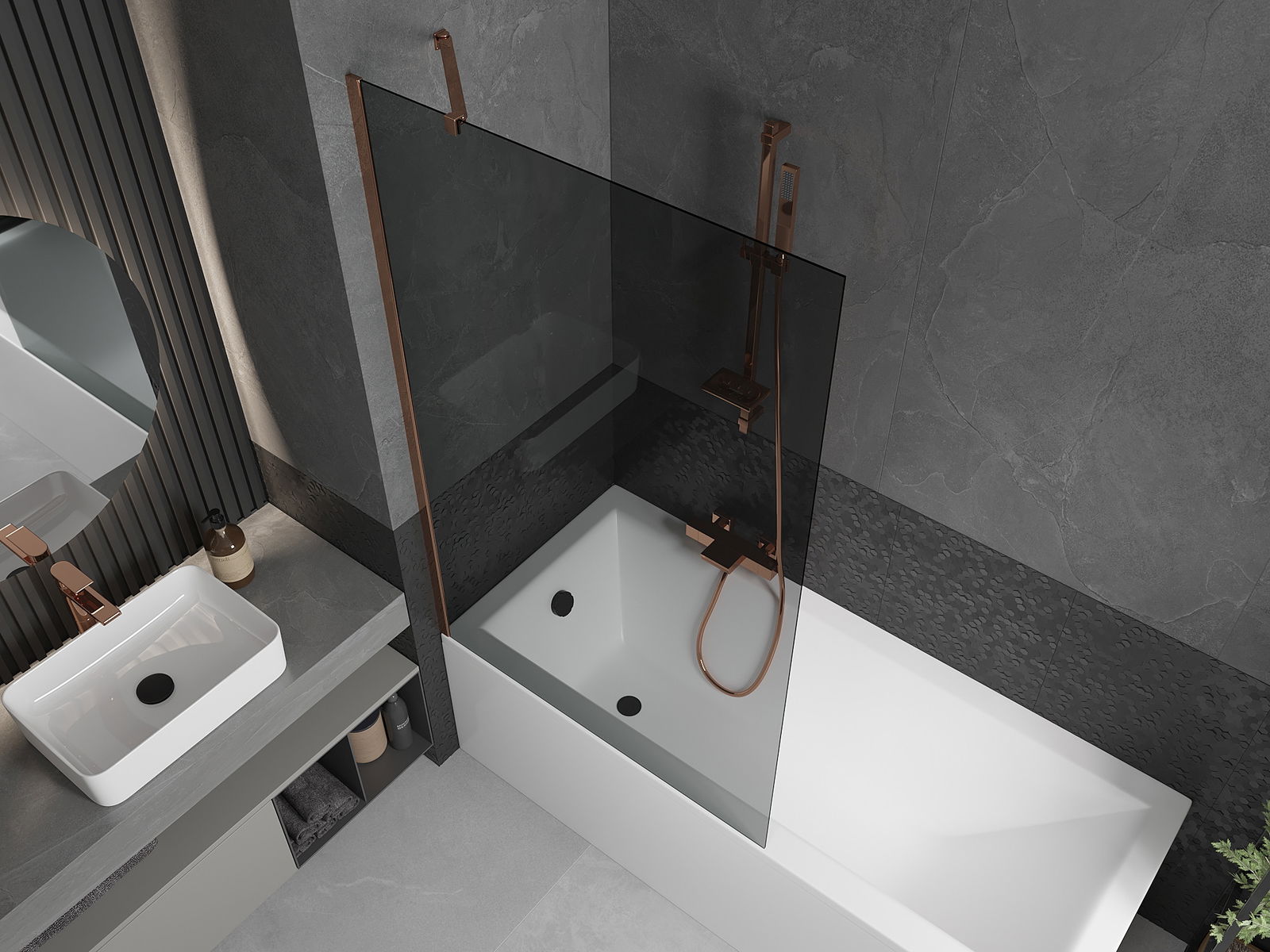 Mexen Next parawan nawannowy 1-skrzydłowy 100 x 150 cm, grafit, różowe złoto - 895-100-000-00-40-60