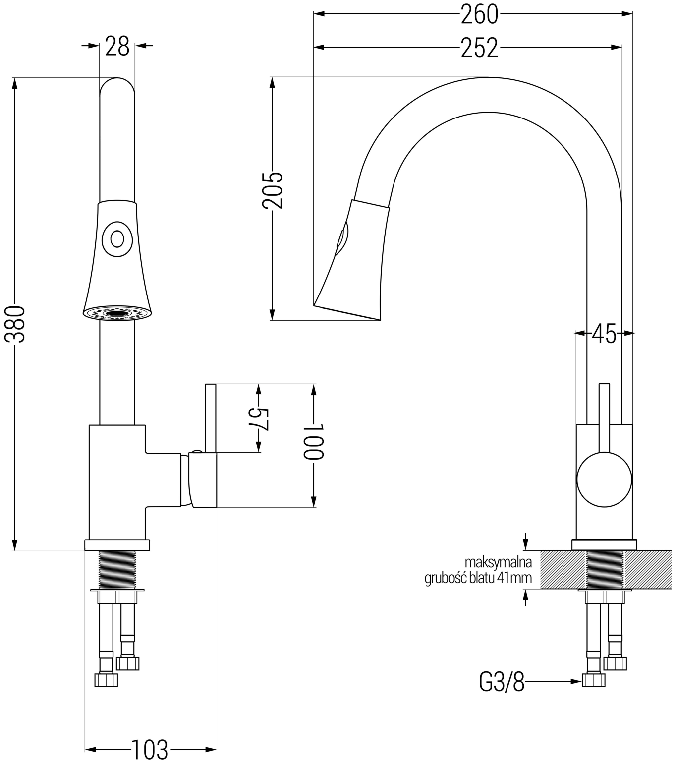 Rodzaj wylewki: Wyciągana