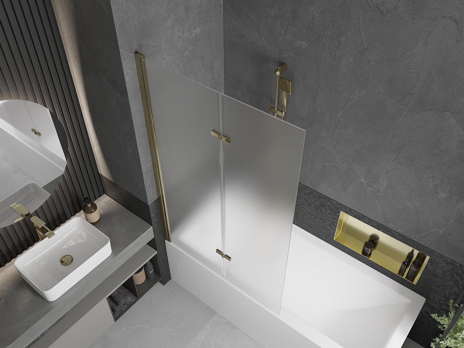 Parawan wykonany z dwóch skrzydeł z możliwością złożenia. Takie rozwiązanie pozwala zaoszczędzić więcej miejsca w łazience i umożliwia swobodne korzystanie z pozostałej przestrzeni, gdy nie korzystamy ze strefy kąpielowej.
