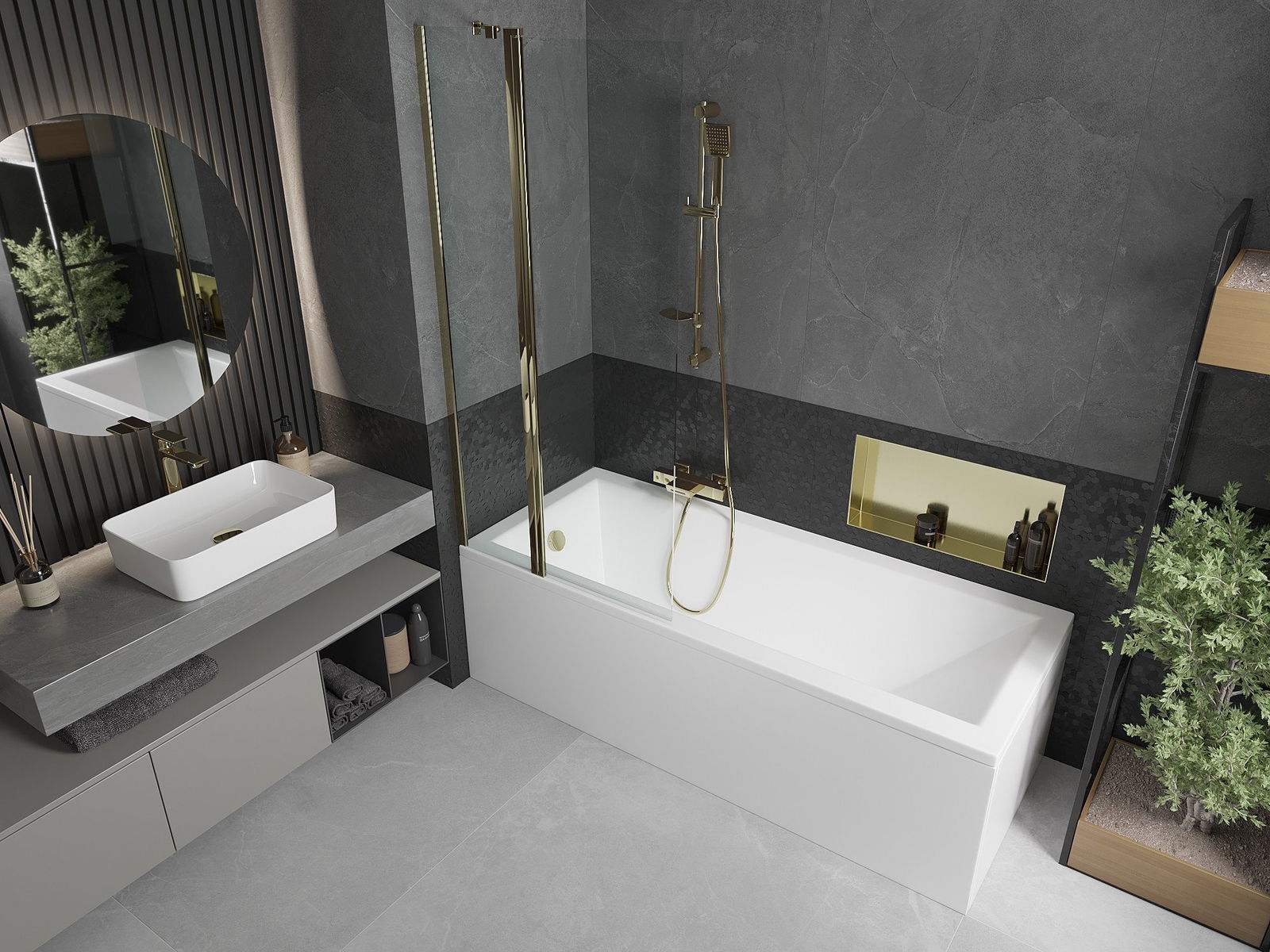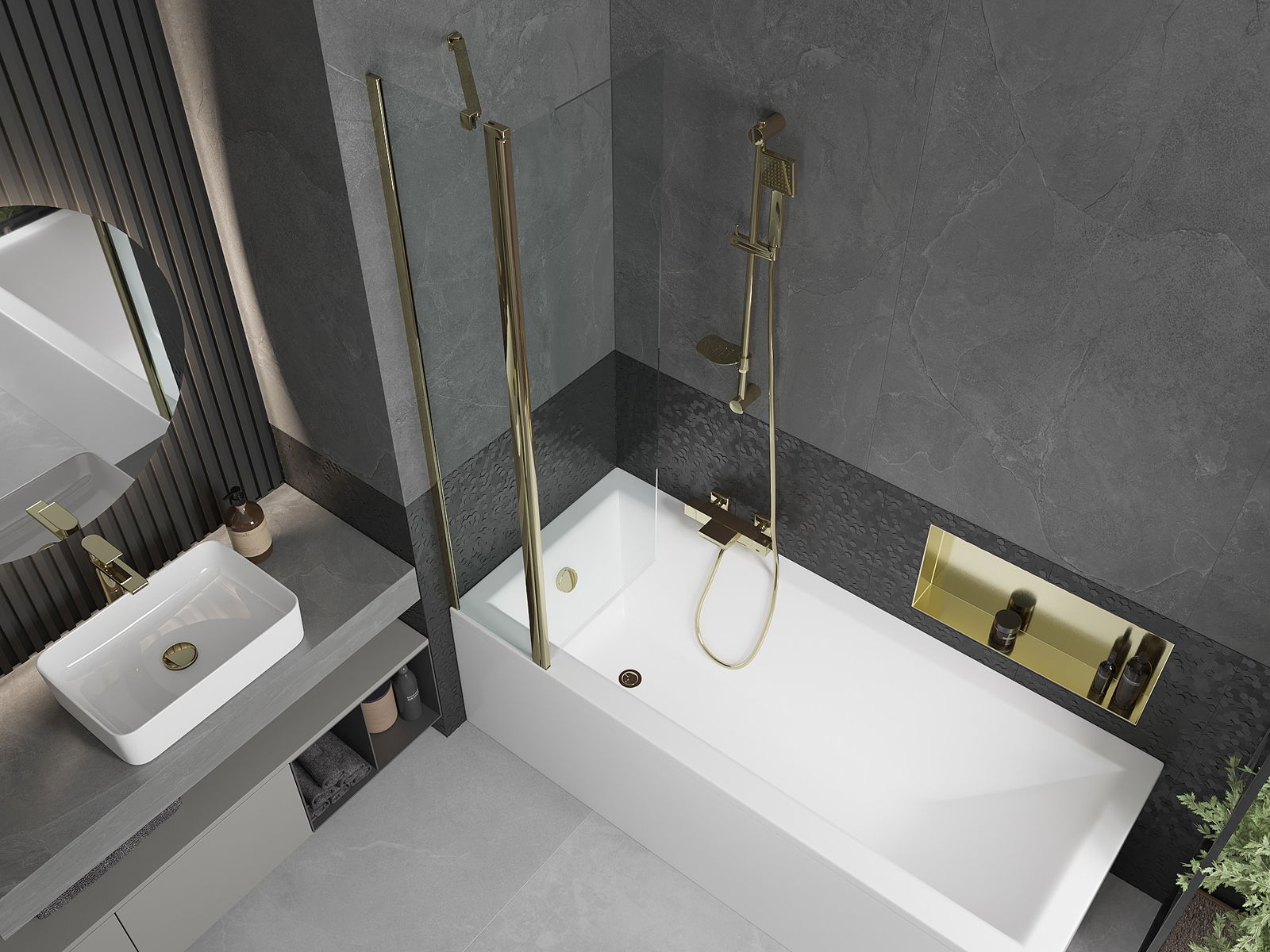 Parawan posiada jedno ruchome skrzydło z możliwością złożenia. Takie rozwiązanie pozwala zaoszczędzić więcej miejsca w łazience i umożliwia swobodne korzystanie z pozostałej przestrzeni, gdy nie korzystamy ze strefy kąpielowej.