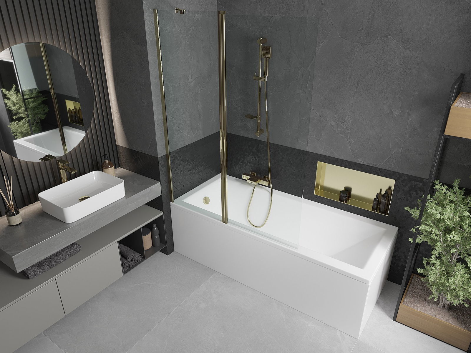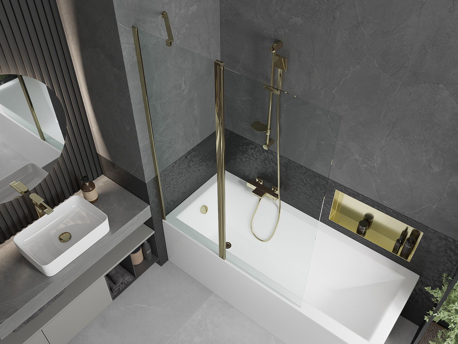 Mexen Flip parawan nawannowy 2-skrzydłowy 120 x 150 cm, transparent, złoty - 894-120-101-50-00