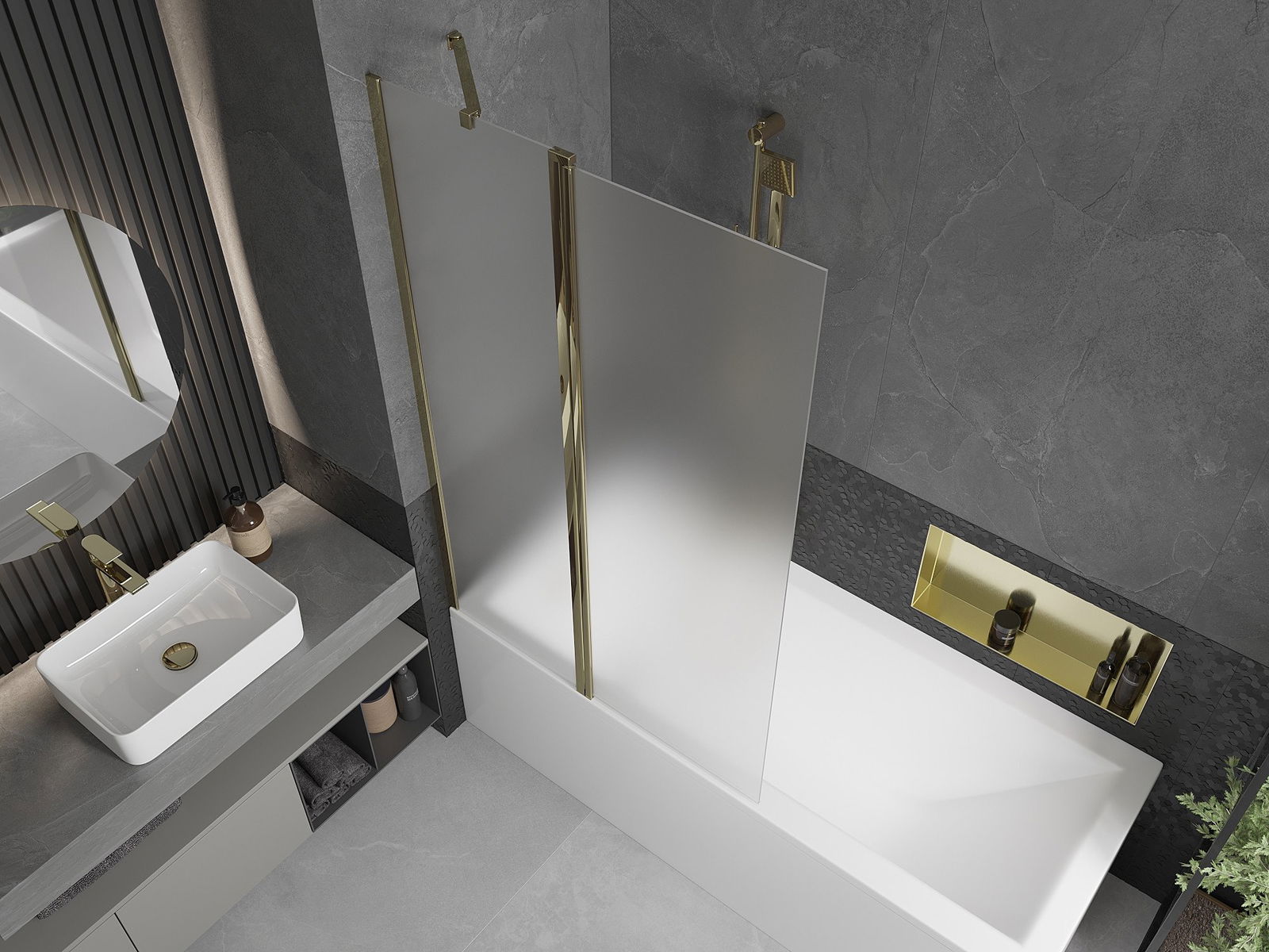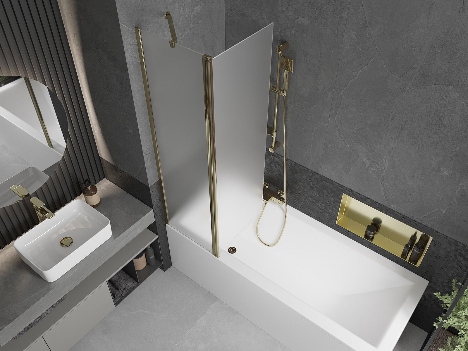 Parawan posiada jedno ruchome skrzydło z możliwością złożenia. Takie rozwiązanie pozwala zaoszczędzić więcej miejsca w łazience i umożliwia swobodne korzystanie z pozostałej przestrzeni, gdy nie korzystamy ze strefy kąpielowej.