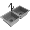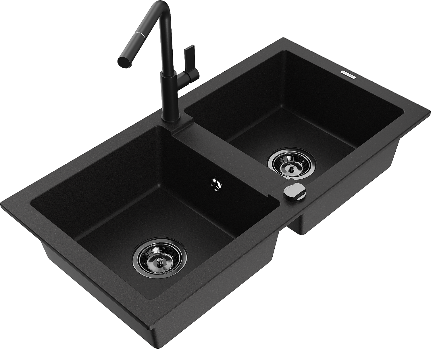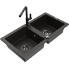 Mexen Mario zlewozmywak granitowy 2-komorowy z baterią kuchenną Flora, czarny - 6504-77-670401-70-B