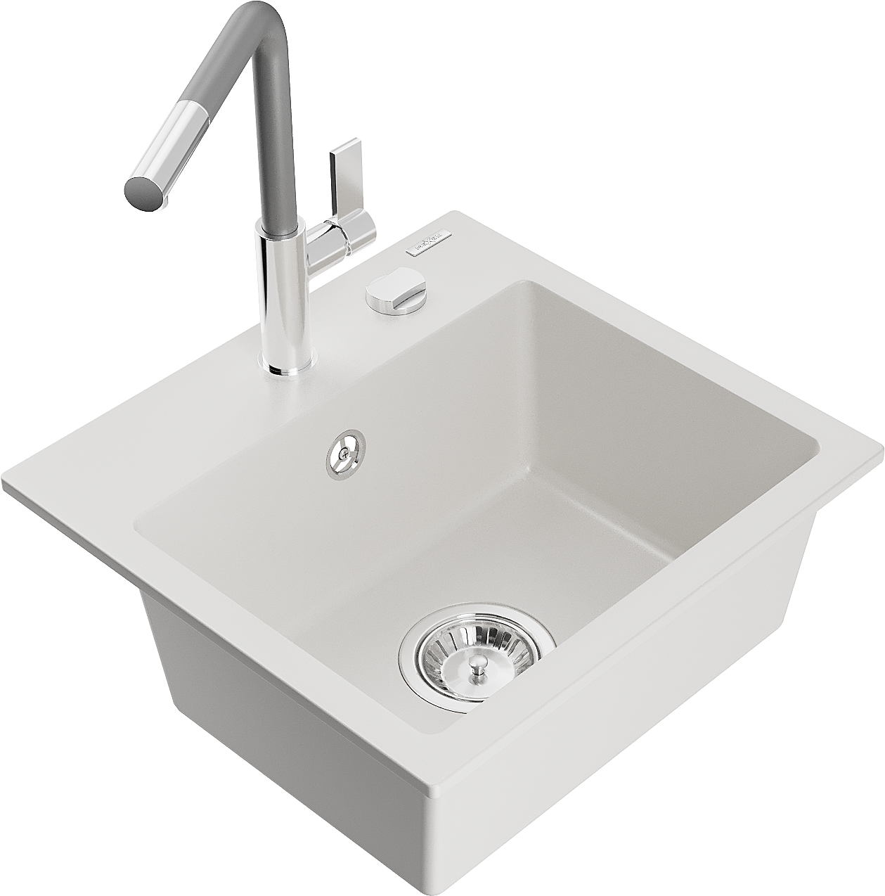Mexen Milo zlewozmywak granitowy 1-komorowy z baterią kuchenną Flora, biały - 6505-20-670401-06