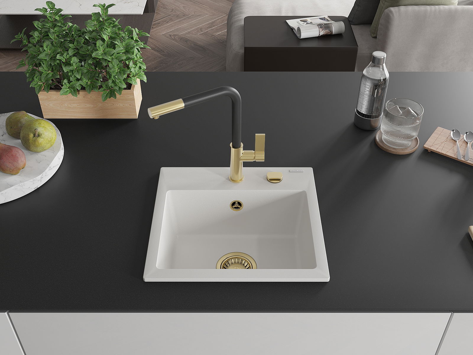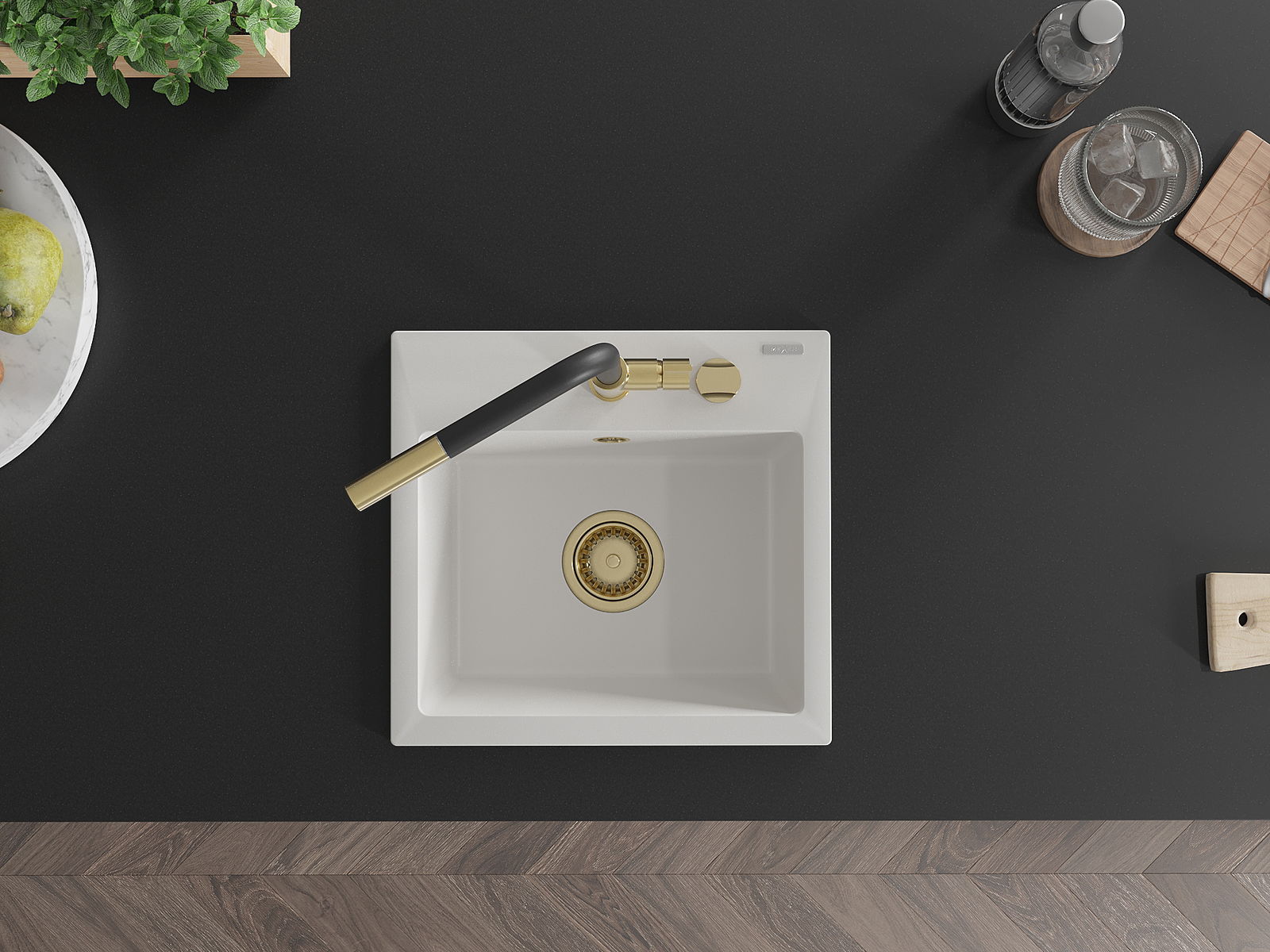 Mexen Milo zlewozmywak granitowy 1-komorowy z baterią kuchenną Flora, biały - 6505-20-670401-57-G