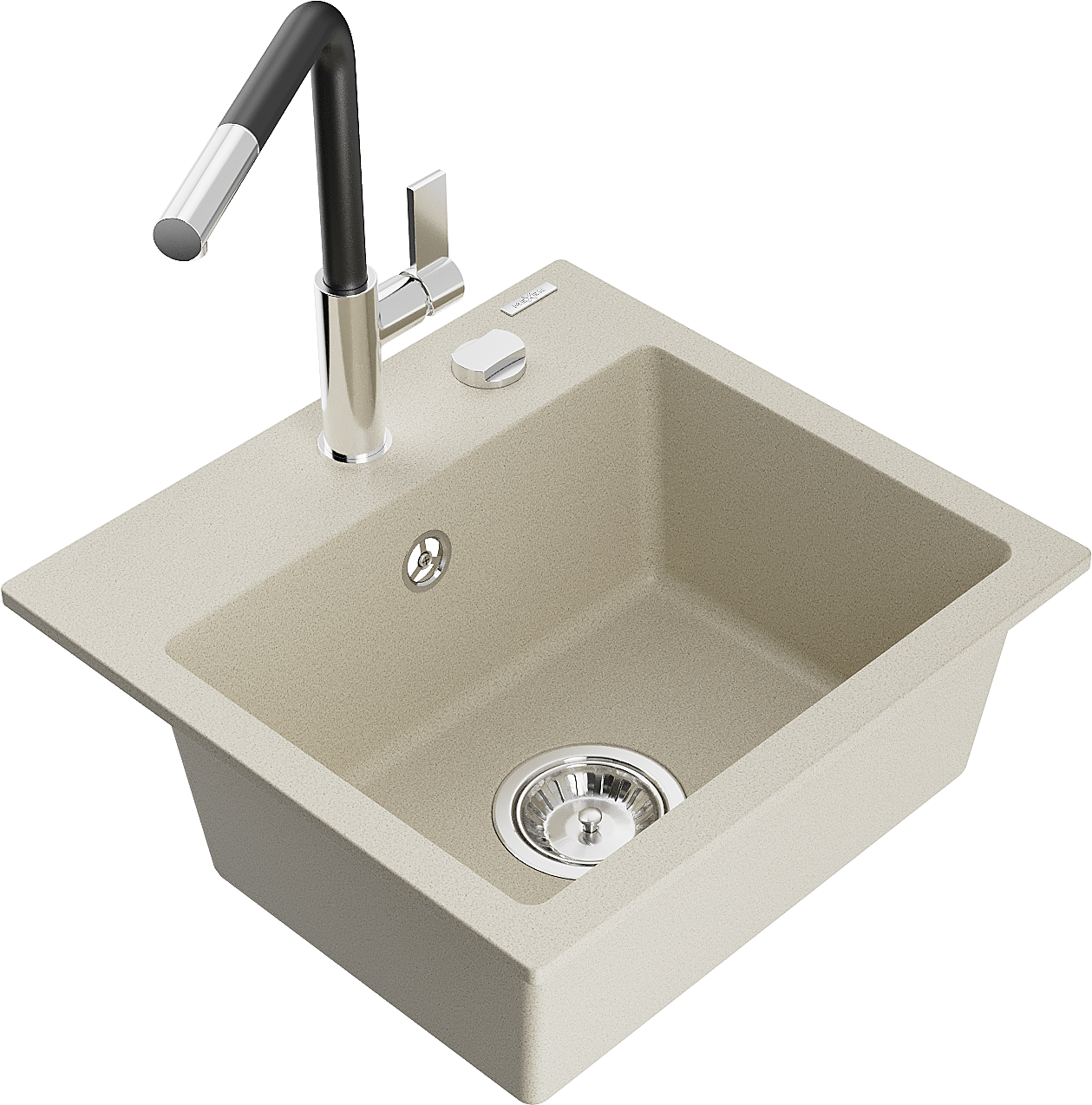Mexen Milo zlewozmywak granitowy 1-komorowy z baterią kuchenną Flora, beżowy - 6505-69-670401-07
