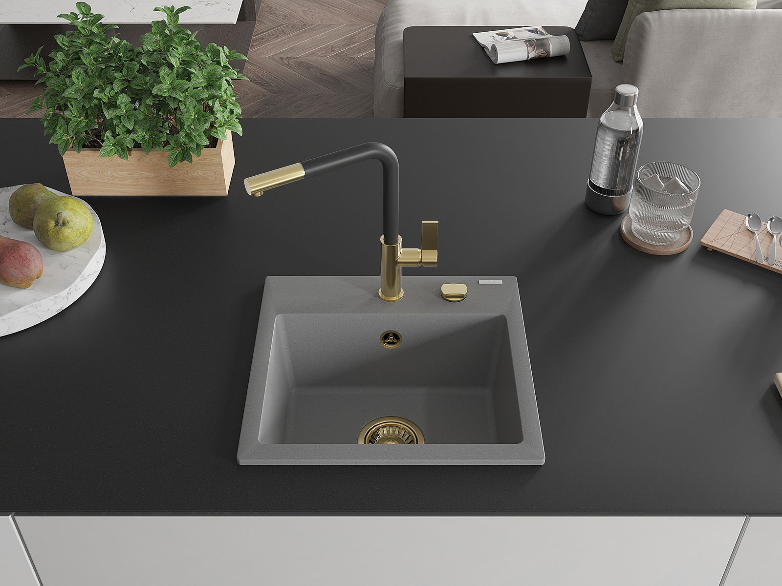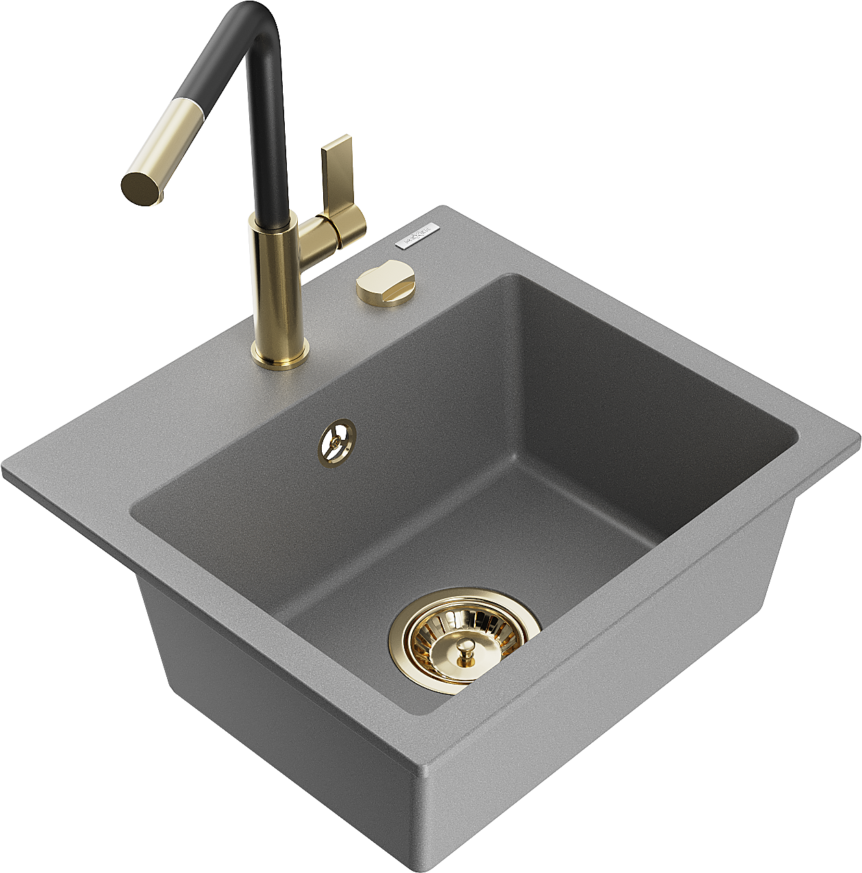 Mexen Milo zlewozmywak granitowy 1-komorowy z baterią kuchenną Flora, szary - 6505-71-670401-57-G
