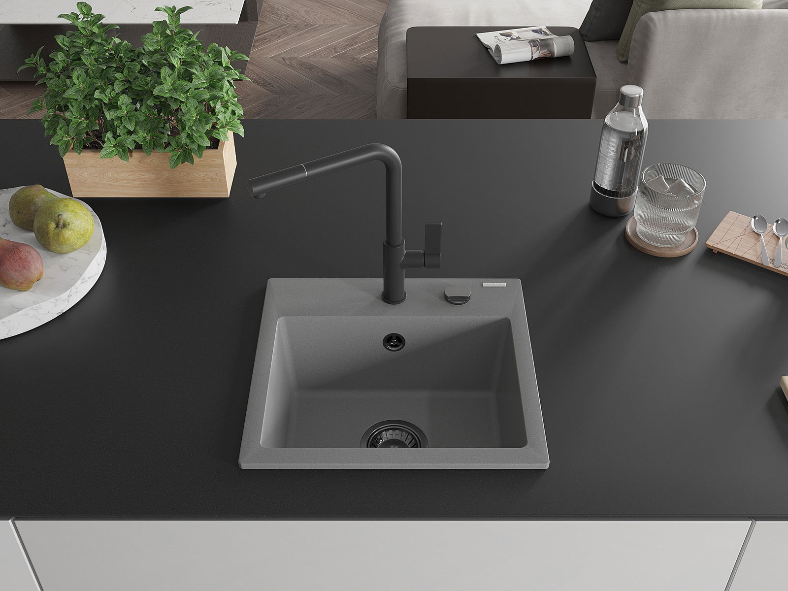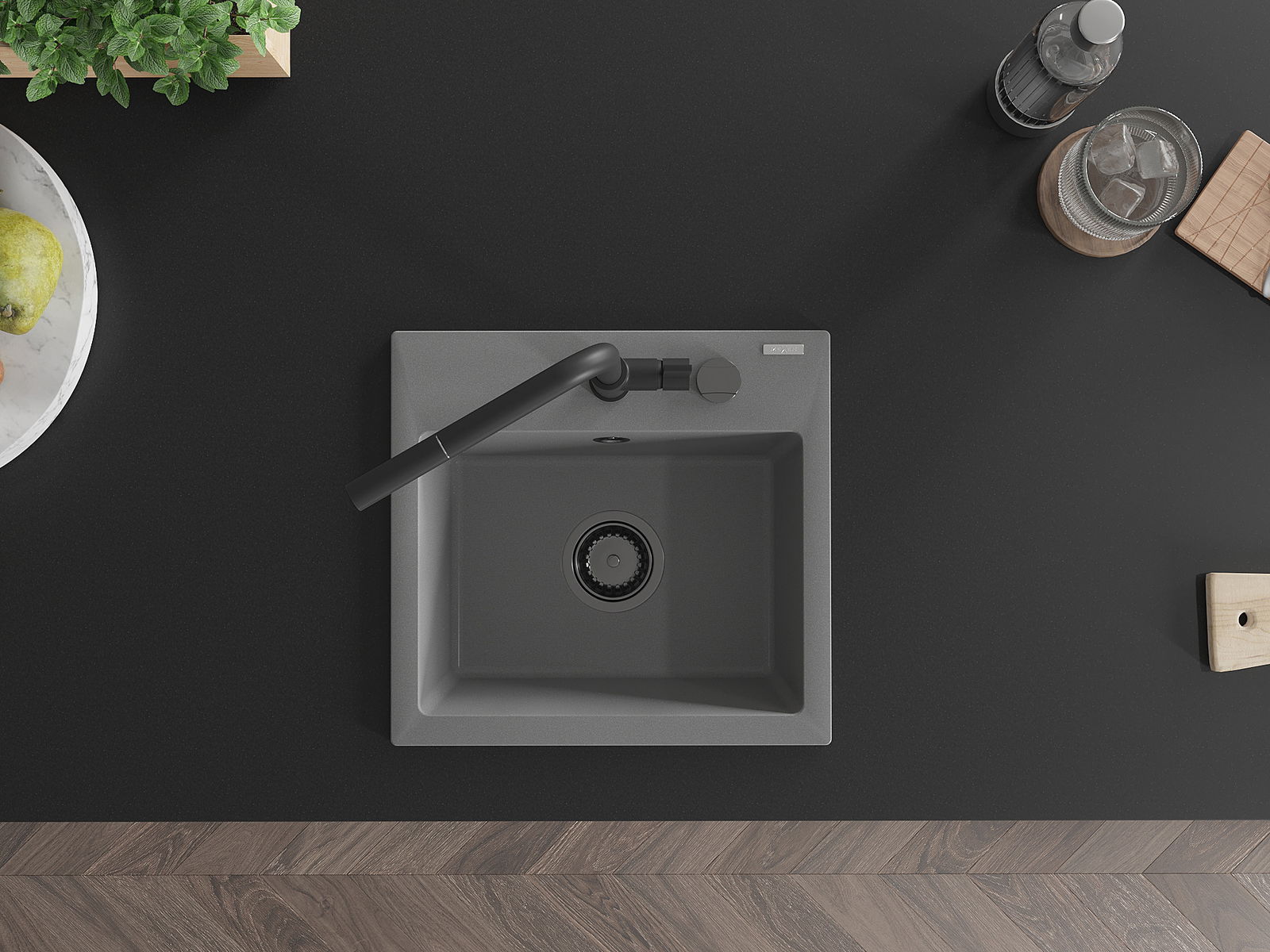 Zlew posiada podfrezowany otwór o średnicy 35 mm do samodzielnego wybicia. Można go wykorzystać m.in. do montażu dozownika na płyn, który wyeliminuje obecność plastikowych butelek w kuchni i nada jej eleganckiego wykończenia.