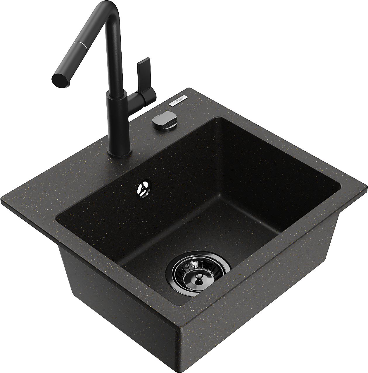 Mexen Milo zlewozmywak granitowy 1-komorowy z baterią kuchenną Flora, czarny/złoty metalik - 6505-75-670401-70-B