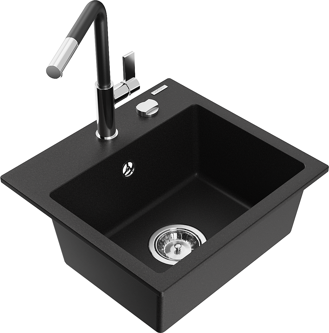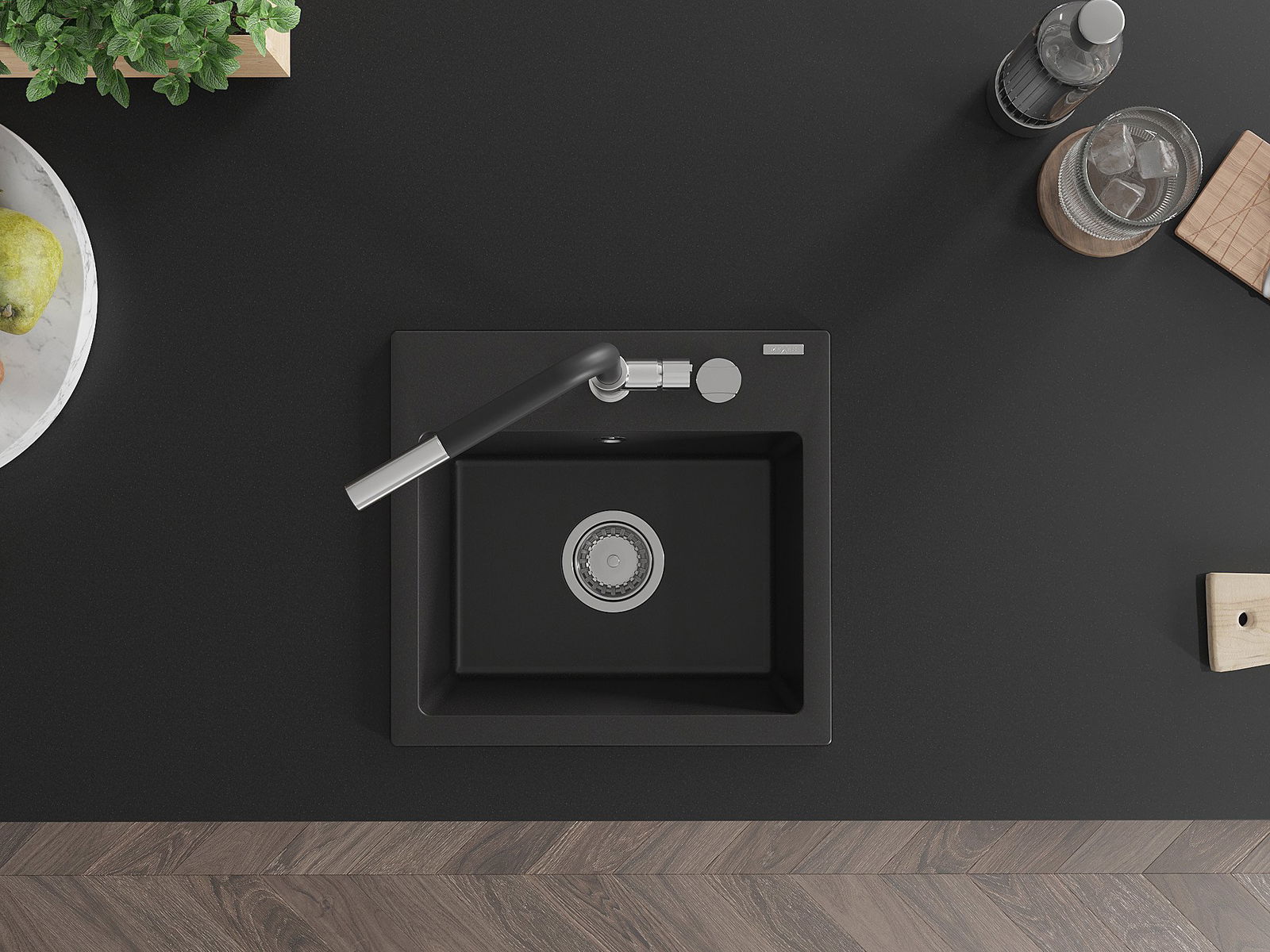 Mexen Milo zlewozmywak granitowy 1-komorowy z baterią kuchenną Flora, czarny - 6505-77-670401-07