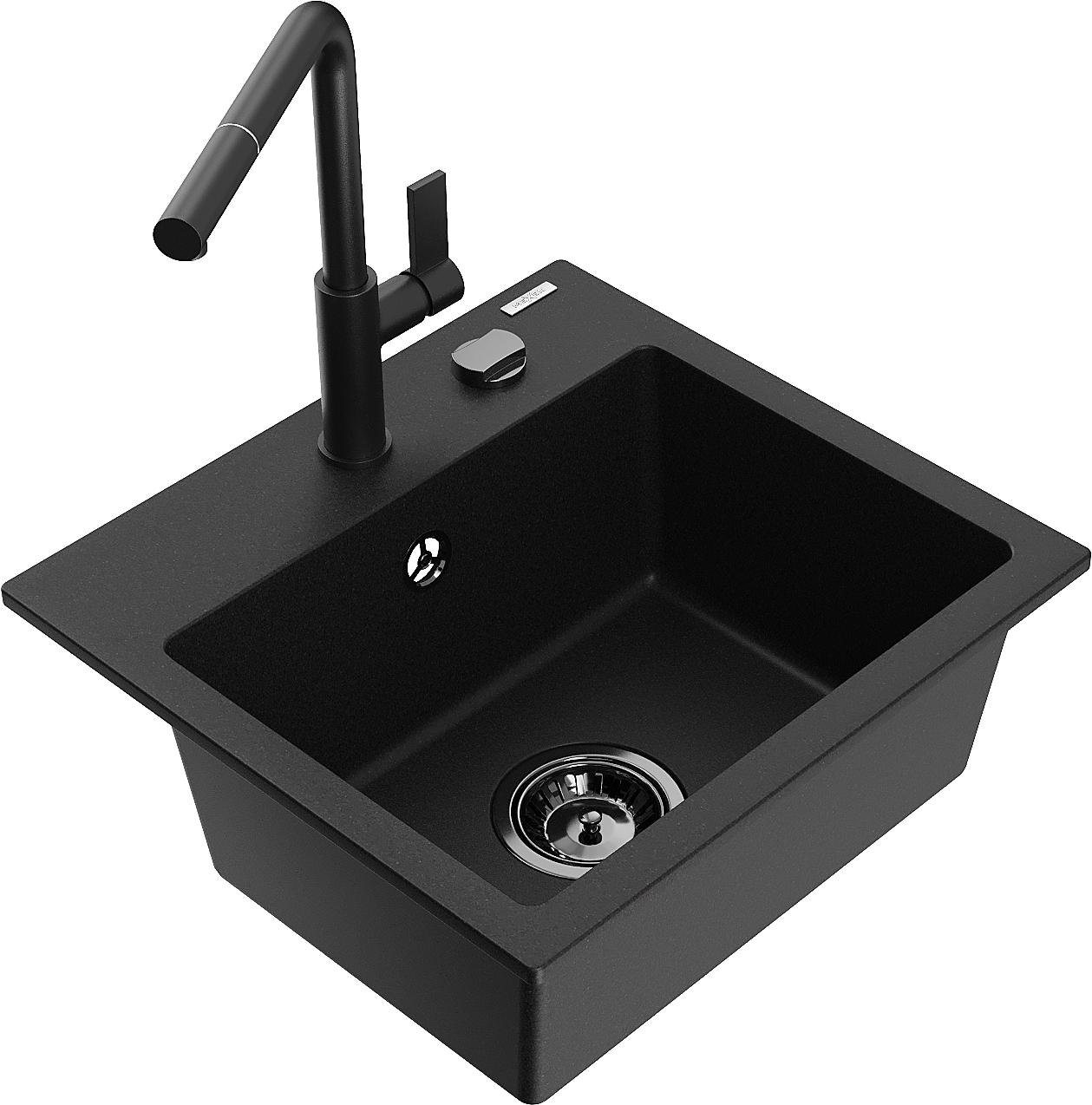 Mexen Milo zlewozmywak granitowy 1-komorowy z baterią kuchenną Flora, czarny - 6505-77-670401-70-B