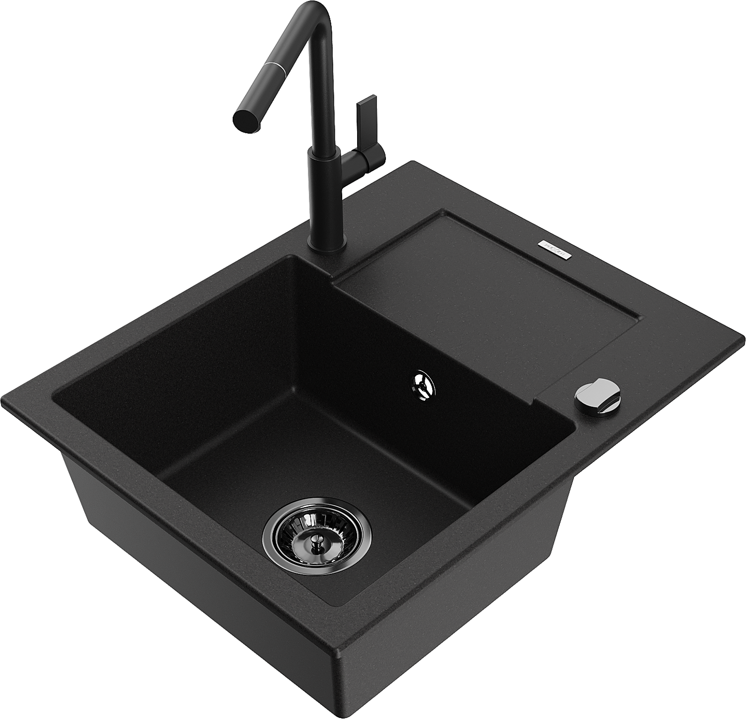 Mexen Enzo zlewozmywak granitowy 1-komorowy z ociekaczem i baterią kuchenną Flora, czarny - 6506-77-670401-70-B