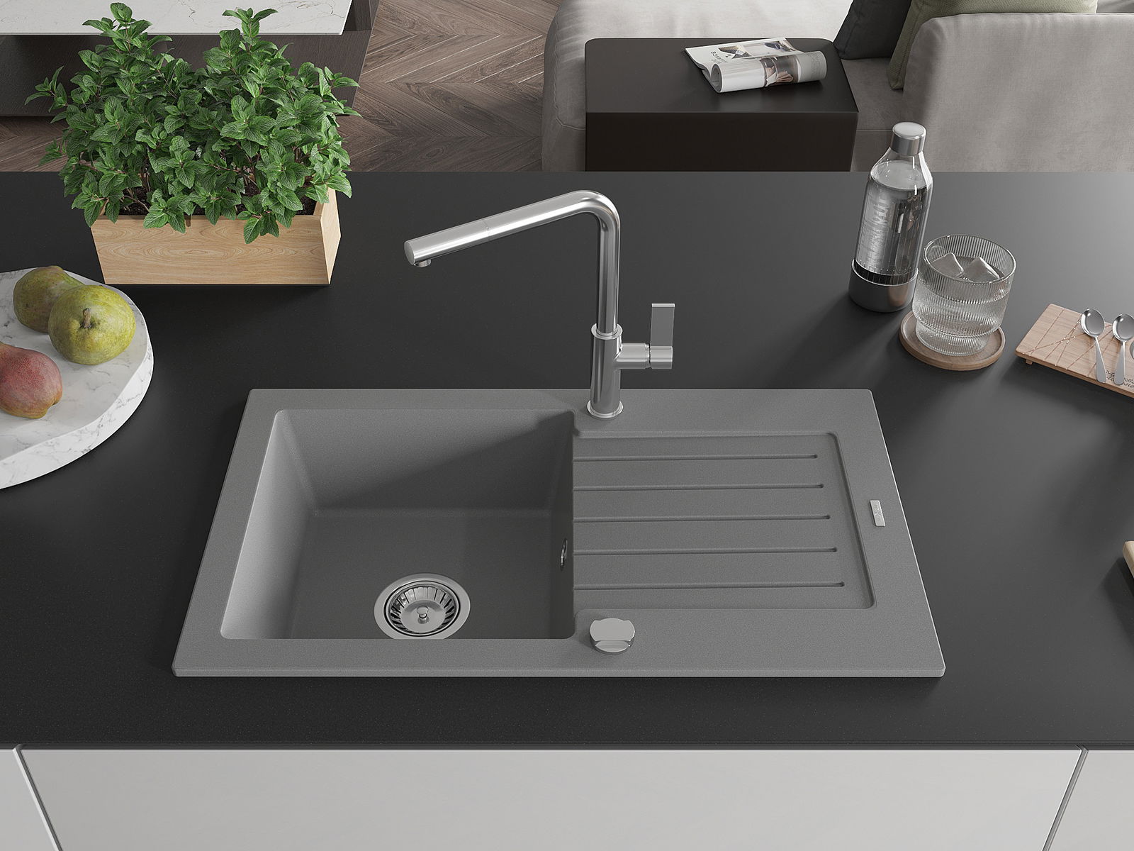 Zlewozmywak został wykonany z wysokiej jakości granitu. Stanowi eleganckie, a przede wszystkim praktyczne uzupełnienie każdej kuchni, niezależnie od jej stylu. Wysoka jakość oraz trwałość granitu zapewniają wieloletnie użytkowanie.