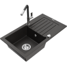Mexen Pablo zlewozmywak granitowy 1-komorowy z ociekaczem i baterią kuchenną Flora, czarny - 6510-77-670401-07