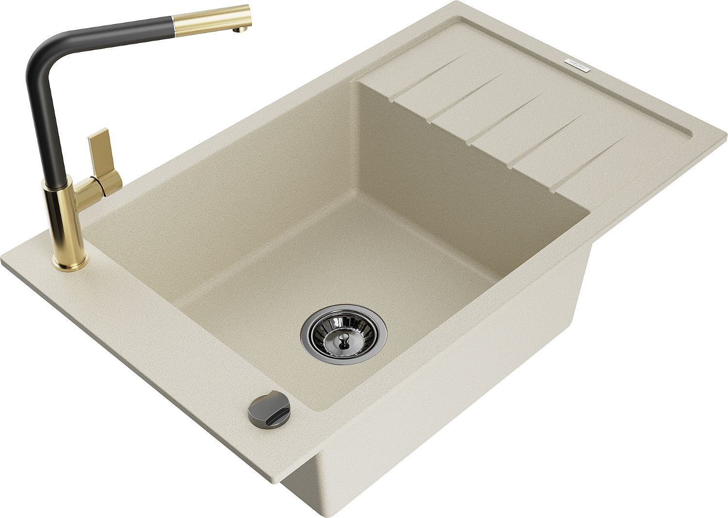 Mexen Elias zlewozmywak granitowy 1-komorowy z ociekaczem i baterią kuchenną Flora, beżowy - 6511-69-670401-57-B