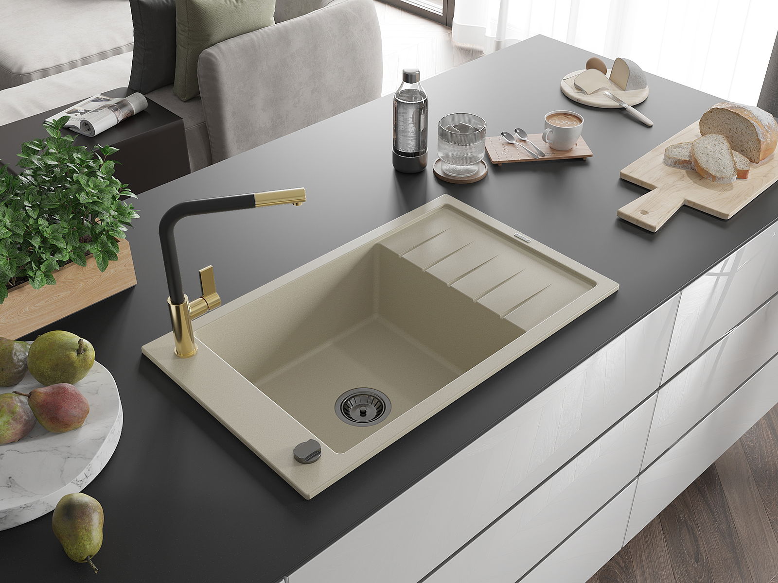 Zlewozmywak został wykonany z wysokiej jakości granitu. Stanowi eleganckie, a przede wszystkim praktyczne uzupełnienie każdej kuchni, niezależnie od jej stylu. Wysoka jakość oraz trwałość granitu zapewniają wieloletnie użytkowanie.