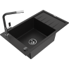 Mexen Elias zlewozmywak granitowy 1-komorowy z ociekaczem i baterią kuchenną Flora, szary - 6511-71-670401-07-B