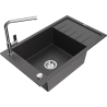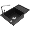 Mexen Elias zlewozmywak granitowy 1-komorowy z ociekaczem i baterią kuchenną Flora, czarny/srebrny metalik - 6511-73-670401-00