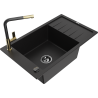Mexen Elias zlewozmywak granitowy 1-komorowy z ociekaczem i baterią kuchenną Flora, czarny nakrapiany - 6511-76-670401-57-B