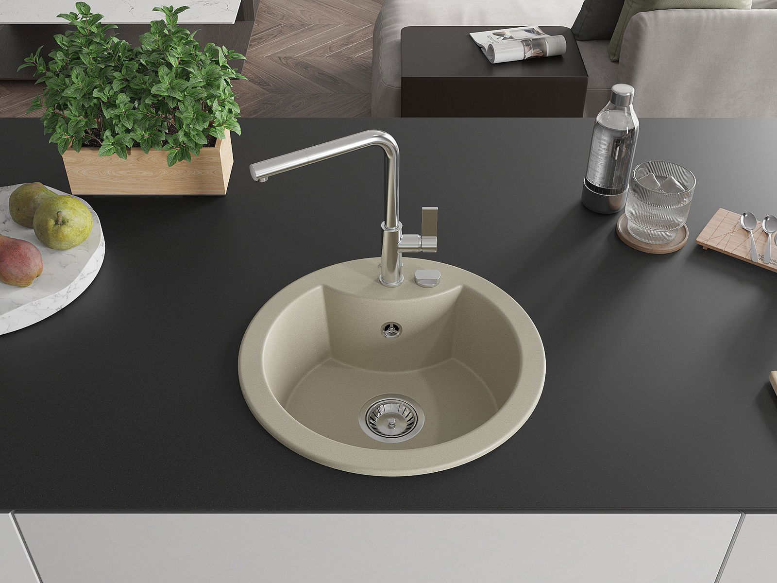 Zlewozmywak został wykonany z wysokiej jakości granitu. Stanowi eleganckie, a przede wszystkim praktyczne uzupełnienie każdej kuchni, niezależnie od jej stylu. Wysoka jakość oraz trwałość granitu zapewniają wieloletnie użytkowanie.
