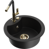 Mexen Diego zlewozmywak granitowy 1-komorowy z baterią kuchenną Flora, czarny/srebrny metalik - 6512-73-670401-57-G