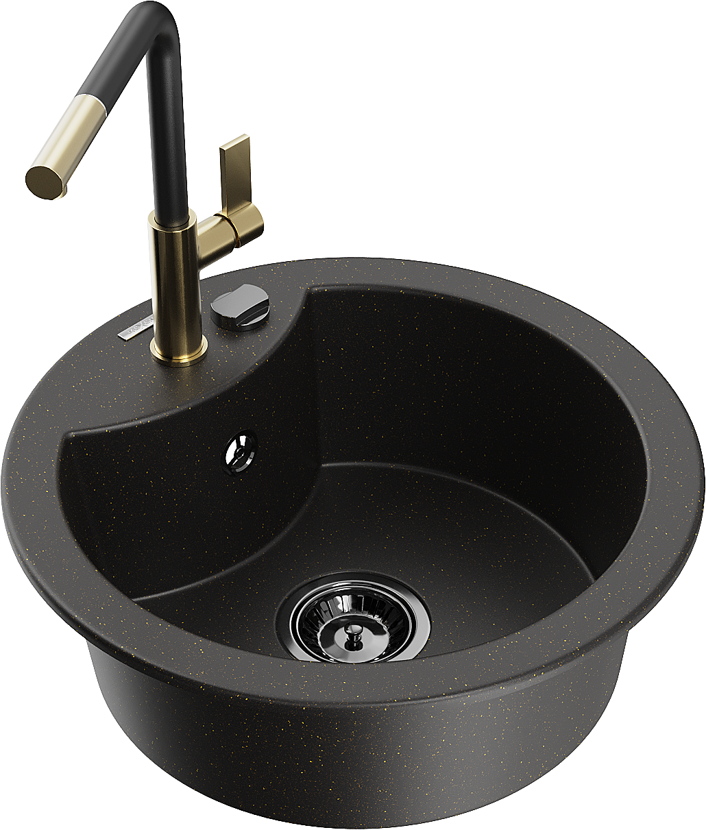 Mexen Diego zlewozmywak granitowy 1-komorowy z baterią kuchenną Flora, czarny/złoty metalik - 6512-75-670401-57-B