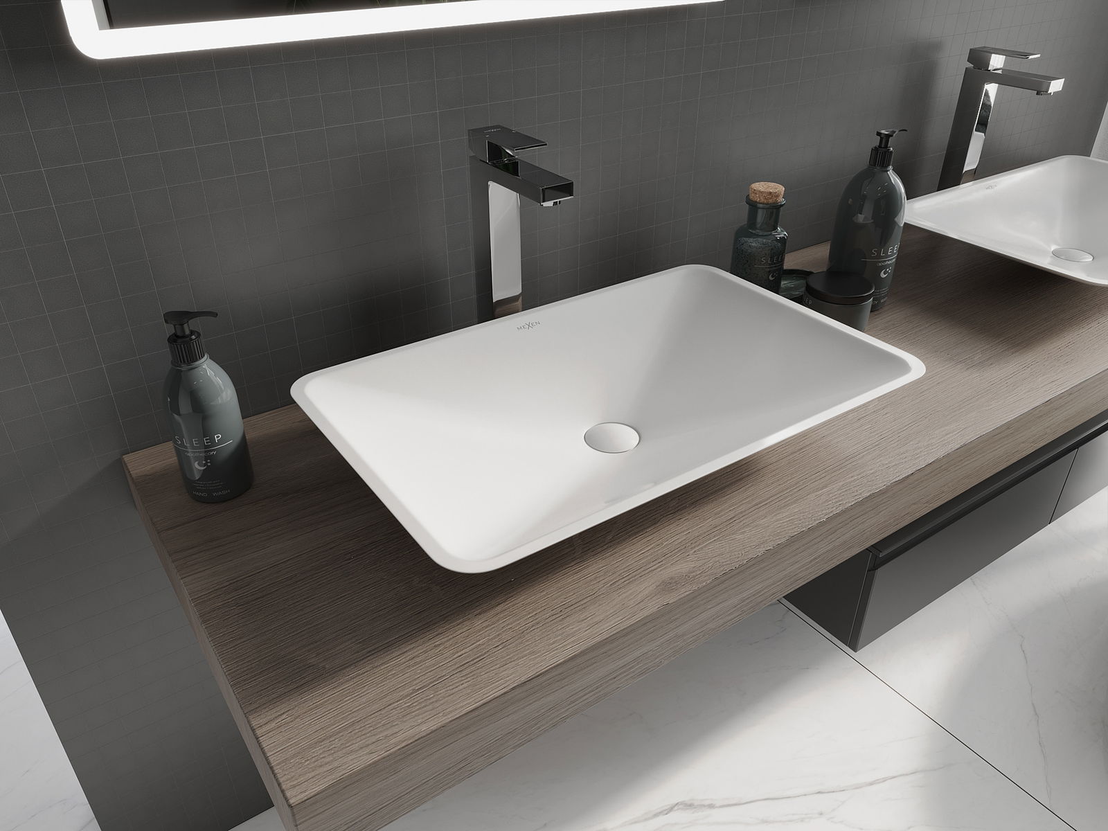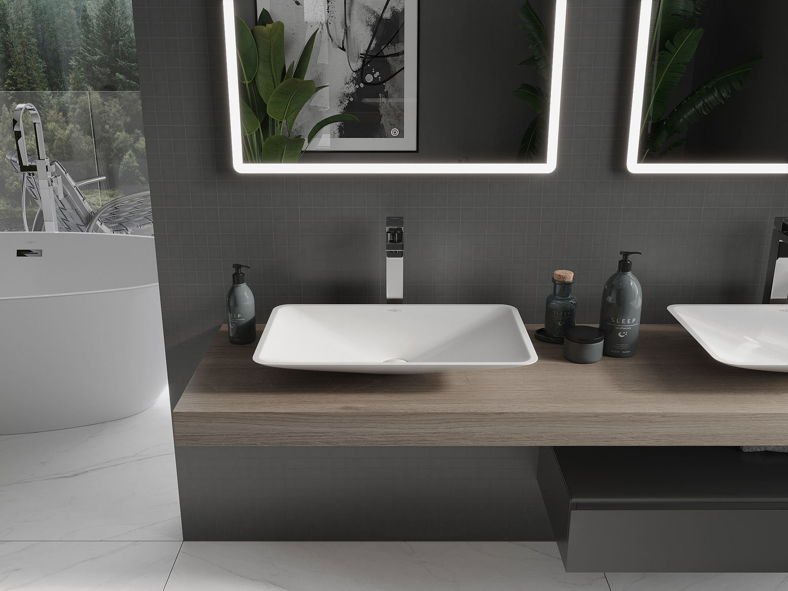 Produkt został wykonany z konglomeratu. Cechuje się gładką powierzchnią oraz wysoką odpornością na uszkodzenia mechaniczne i powstawanie zarysowań. Trwałe rozwiązanie, zachowujące estetyczny wygląd przez wiele lat użytkowania.
