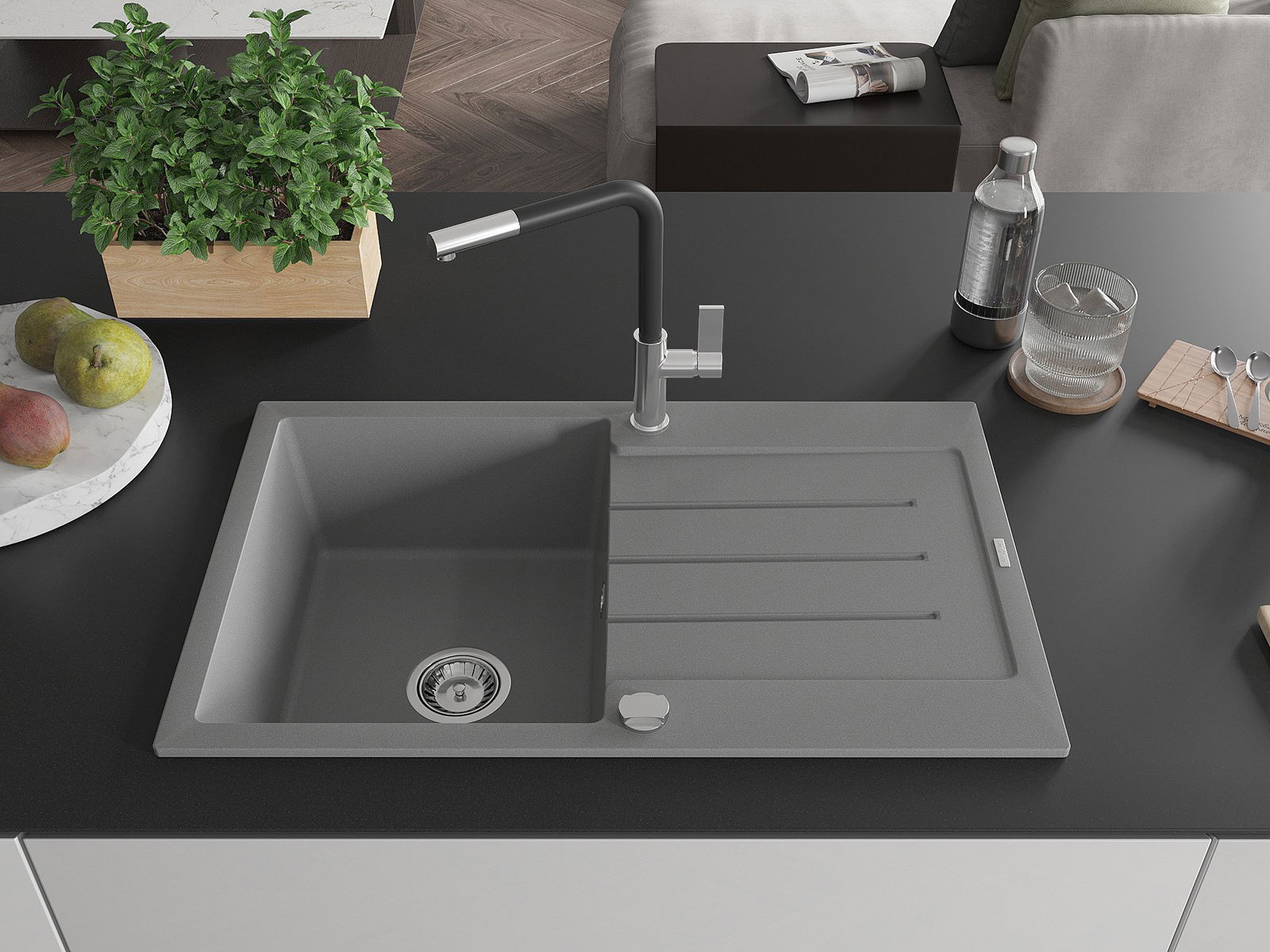 Zlewozmywak został wykonany z wysokiej jakości granitu. Stanowi eleganckie, a przede wszystkim praktyczne uzupełnienie każdej kuchni, niezależnie od jej stylu. Wysoka jakość oraz trwałość granitu zapewniają wieloletnie użytkowanie.