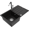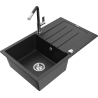 Mexen Bruno zlewozmywak granitowy 1-komorowy z ociekaczem i baterią kuchenną Flora, szary - 6513-71-670401-07