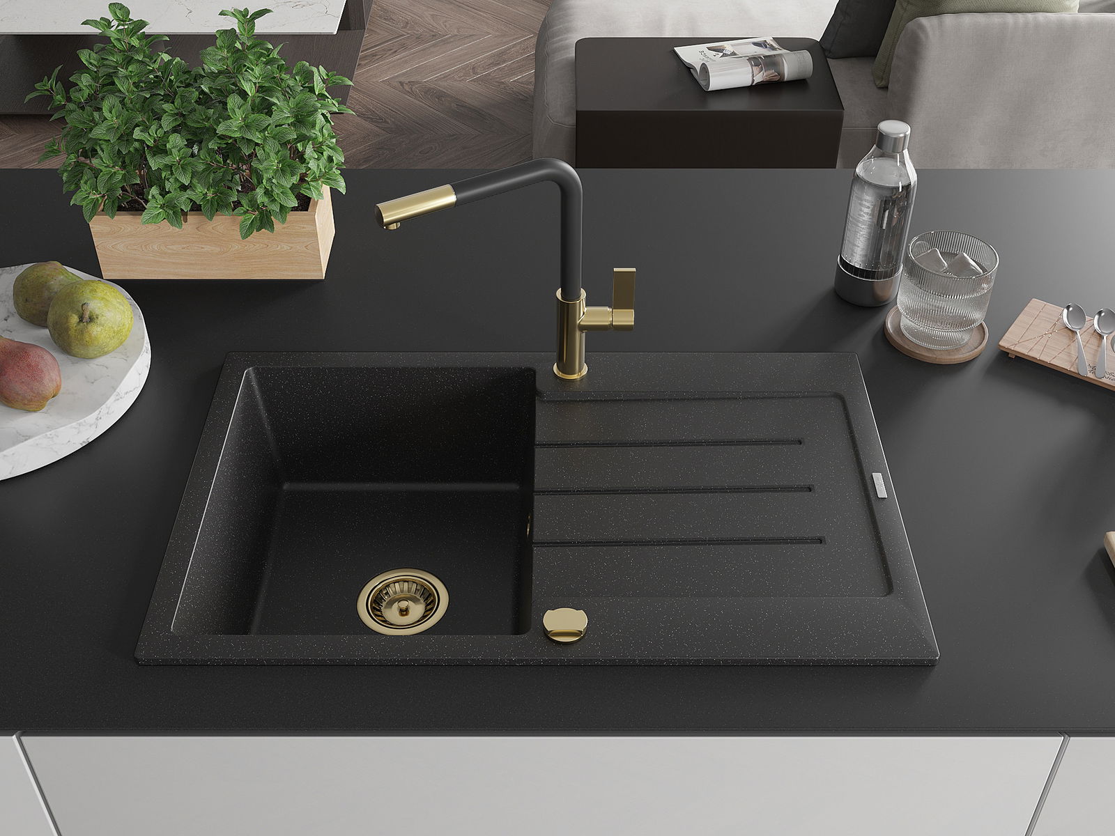 Zlewozmywak został wykonany z wysokiej jakości granitu. Stanowi eleganckie, a przede wszystkim praktyczne uzupełnienie każdej kuchni, niezależnie od jej stylu. Wysoka jakość oraz trwałość granitu zapewniają wieloletnie użytkowanie.