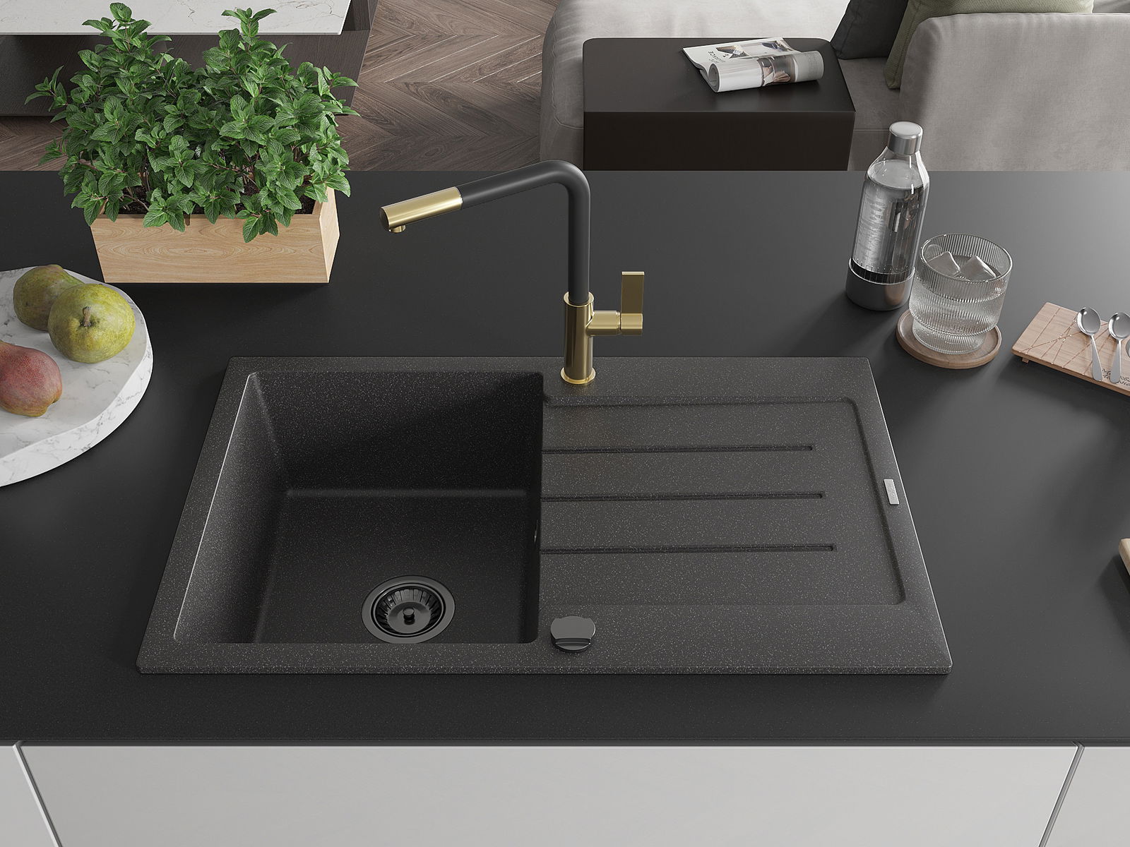 Zlewozmywak został wykonany z wysokiej jakości granitu. Stanowi eleganckie, a przede wszystkim praktyczne uzupełnienie każdej kuchni, niezależnie od jej stylu. Wysoka jakość oraz trwałość granitu zapewniają wieloletnie użytkowanie.