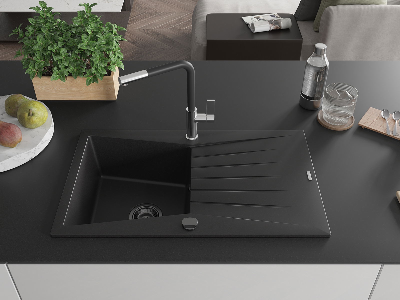 Zlewozmywak został wykonany z wysokiej jakości granitu. Stanowi eleganckie, a przede wszystkim praktyczne uzupełnienie każdej kuchni, niezależnie od jej stylu. Wysoka jakość oraz trwałość granitu zapewniają wieloletnie użytkowanie.