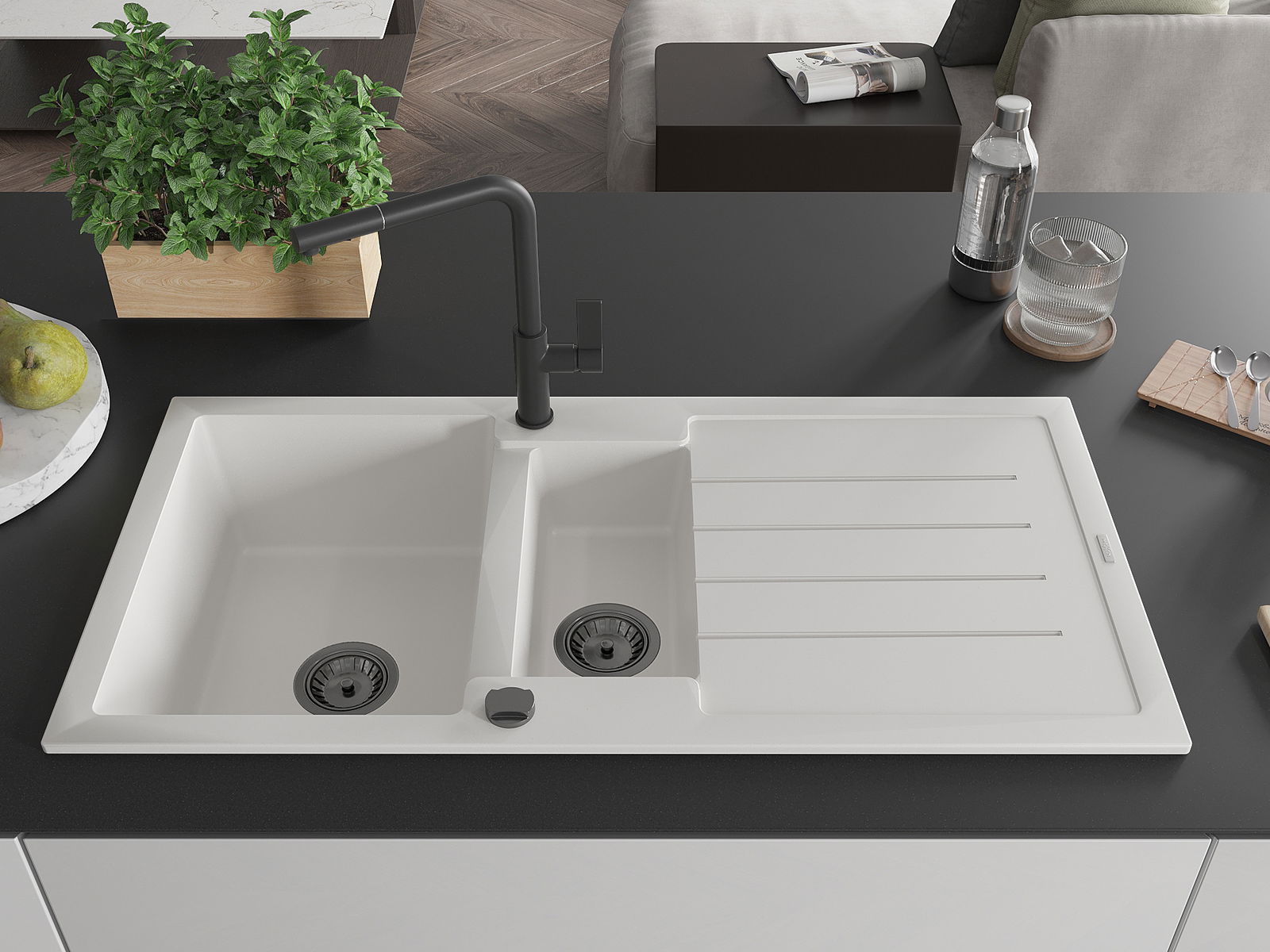 Zlewozmywak został wykonany z wysokiej jakości granitu. Stanowi eleganckie, a przede wszystkim praktyczne uzupełnienie każdej kuchni, niezależnie od jej stylu. Wysoka jakość oraz trwałość granitu zapewniają wieloletnie użytkowanie.