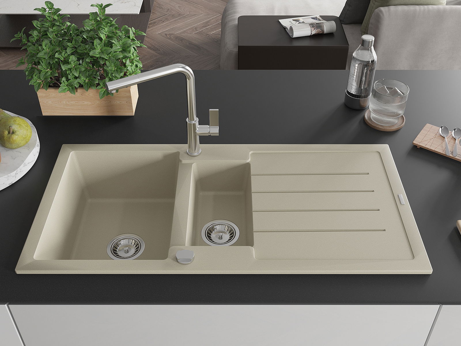 Dobrze zabezpieczona powierzchnia zlewozmywaka hamuje wnikanie zabrudzeń do jego wewnętrznych struktur. Dzięki temu utrzymanie zlewu w czystości jest jeszcze łatwiejsze, a jego powierzchnia zachowuje swoją estetykę na dłużej.