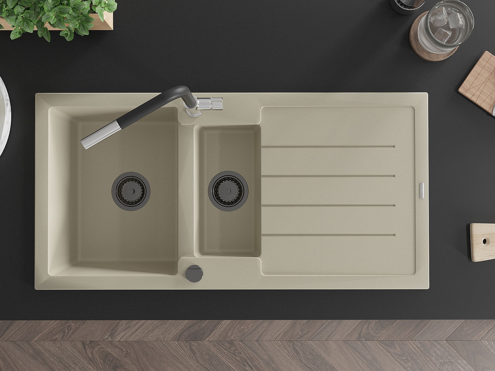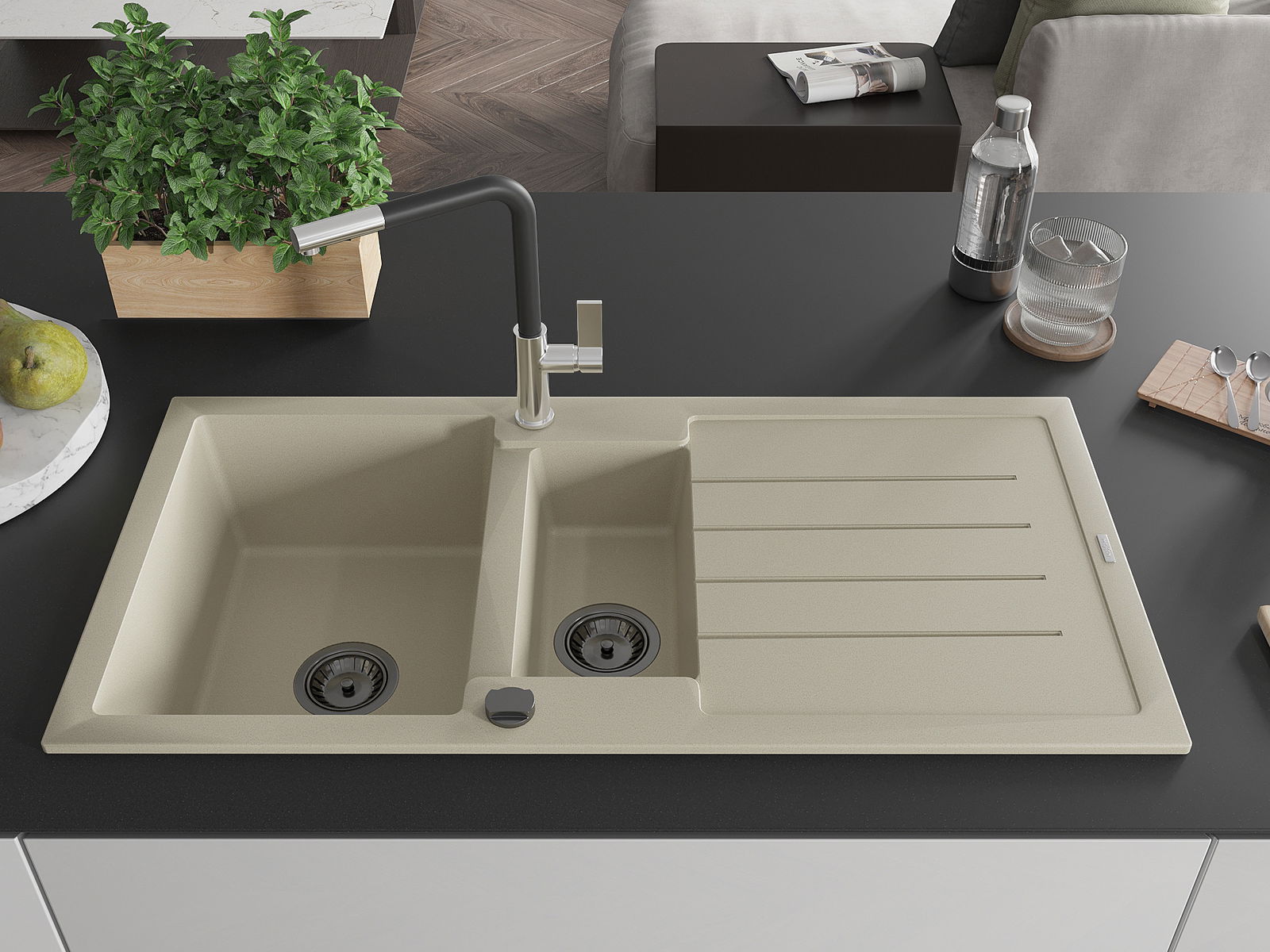 Zlewozmywak został wykonany z wysokiej jakości granitu. Stanowi eleganckie, a przede wszystkim praktyczne uzupełnienie każdej kuchni, niezależnie od jej stylu. Wysoka jakość oraz trwałość granitu zapewniają wieloletnie użytkowanie.