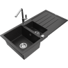 Mexen Andres zlewozmywak granitowy 1,5-komorowy z ociekaczem i baterią kuchenną Flora, czarny nakrapiany - 6515-76-670401-08