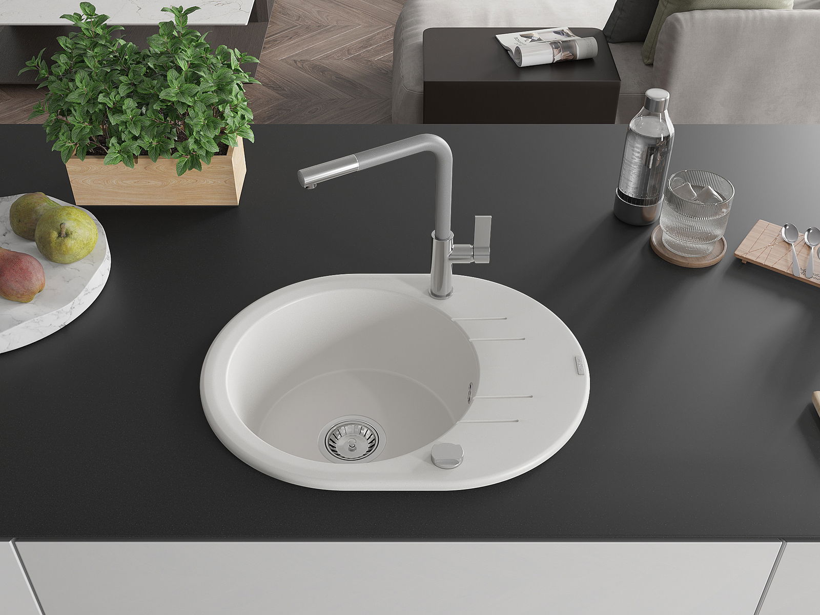 Zlewozmywak został wykonany z wysokiej jakości granitu. Stanowi eleganckie, a przede wszystkim praktyczne uzupełnienie każdej kuchni, niezależnie od jej stylu. Wysoka jakość oraz trwałość granitu zapewniają wieloletnie użytkowanie.