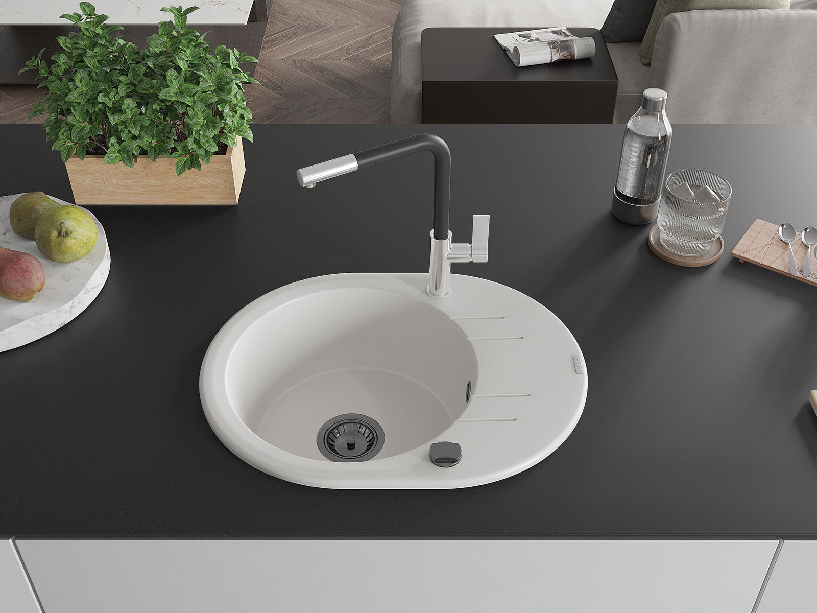 Zlewozmywak został wykonany z wysokiej jakości granitu. Stanowi eleganckie, a przede wszystkim praktyczne uzupełnienie każdej kuchni, niezależnie od jej stylu. Wysoka jakość oraz trwałość granitu zapewniają wieloletnie użytkowanie.