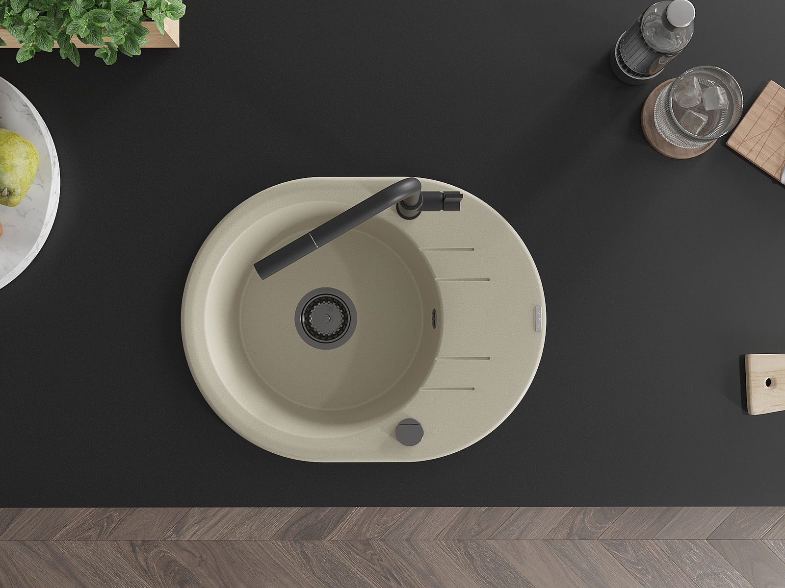 Mexen Kevin zlewozmywak granitowy 1-komorowy z ociekaczem i baterią kuchenną Flora, beżowy - 6517-69-670401-70-B