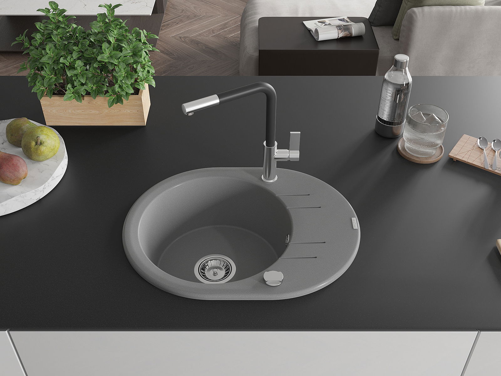 Zlewozmywak został wykonany z wysokiej jakości granitu. Stanowi eleganckie, a przede wszystkim praktyczne uzupełnienie każdej kuchni, niezależnie od jej stylu. Wysoka jakość oraz trwałość granitu zapewniają wieloletnie użytkowanie.